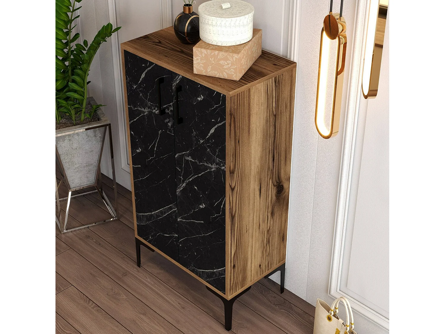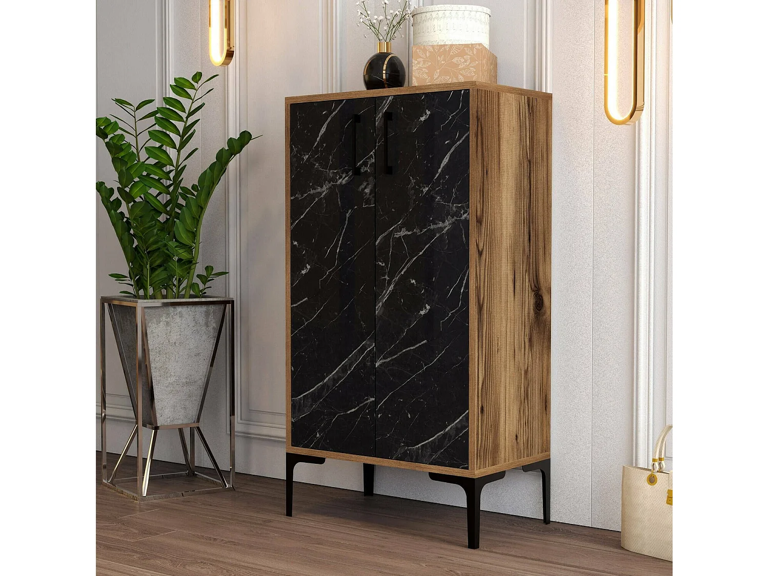 Étagère à chaussures Provo, armoire à chaussures 4 portes, armoire basse polyvalente avec 5 étagères, étagère à chaussures moderne, 106x22h115 cm, chêne et noir