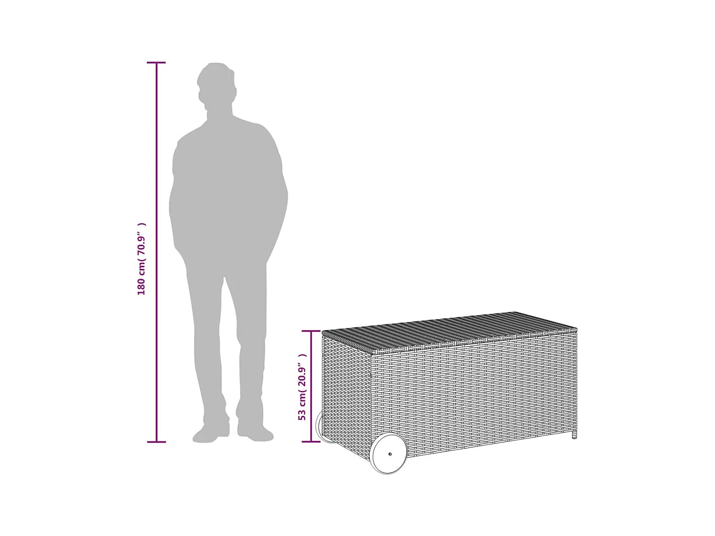 Dorian Boîte de rangement de jardin et roues marron 190L poly rotin