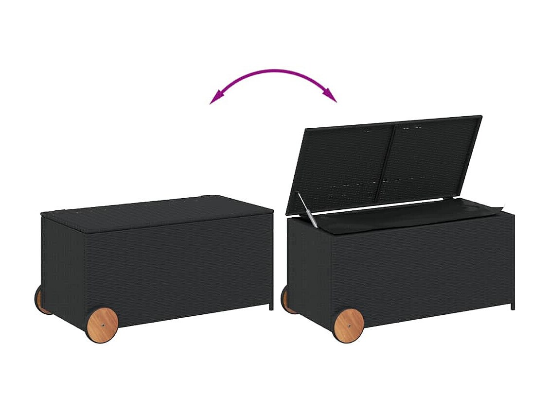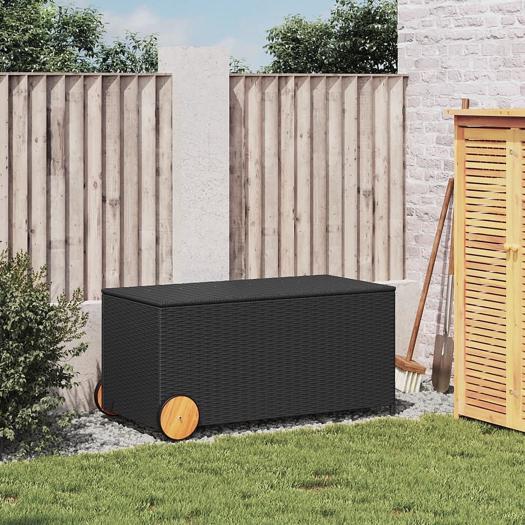 Dorian Boîte de rangement de jardin et roues noir 190L résine tressée