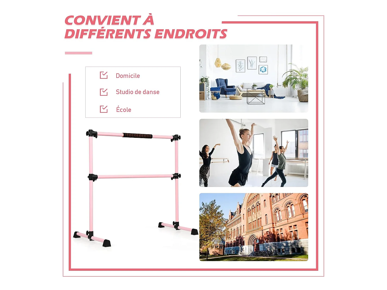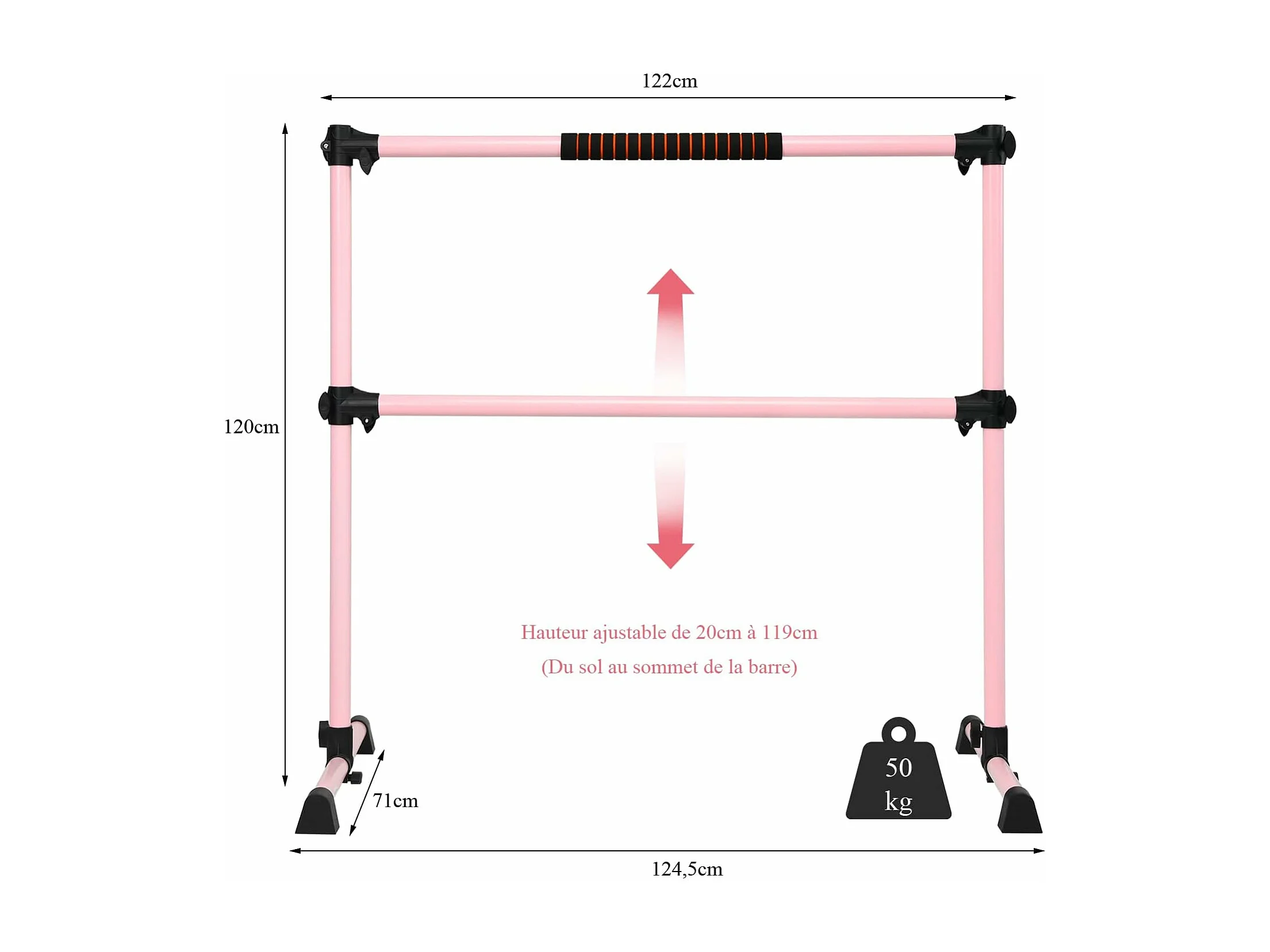 Double Barre de Danse Classique Hauteur Réglable 20-119CM avec Eponge Base Rotative Charge Max 50KG pour Gymnase Traction