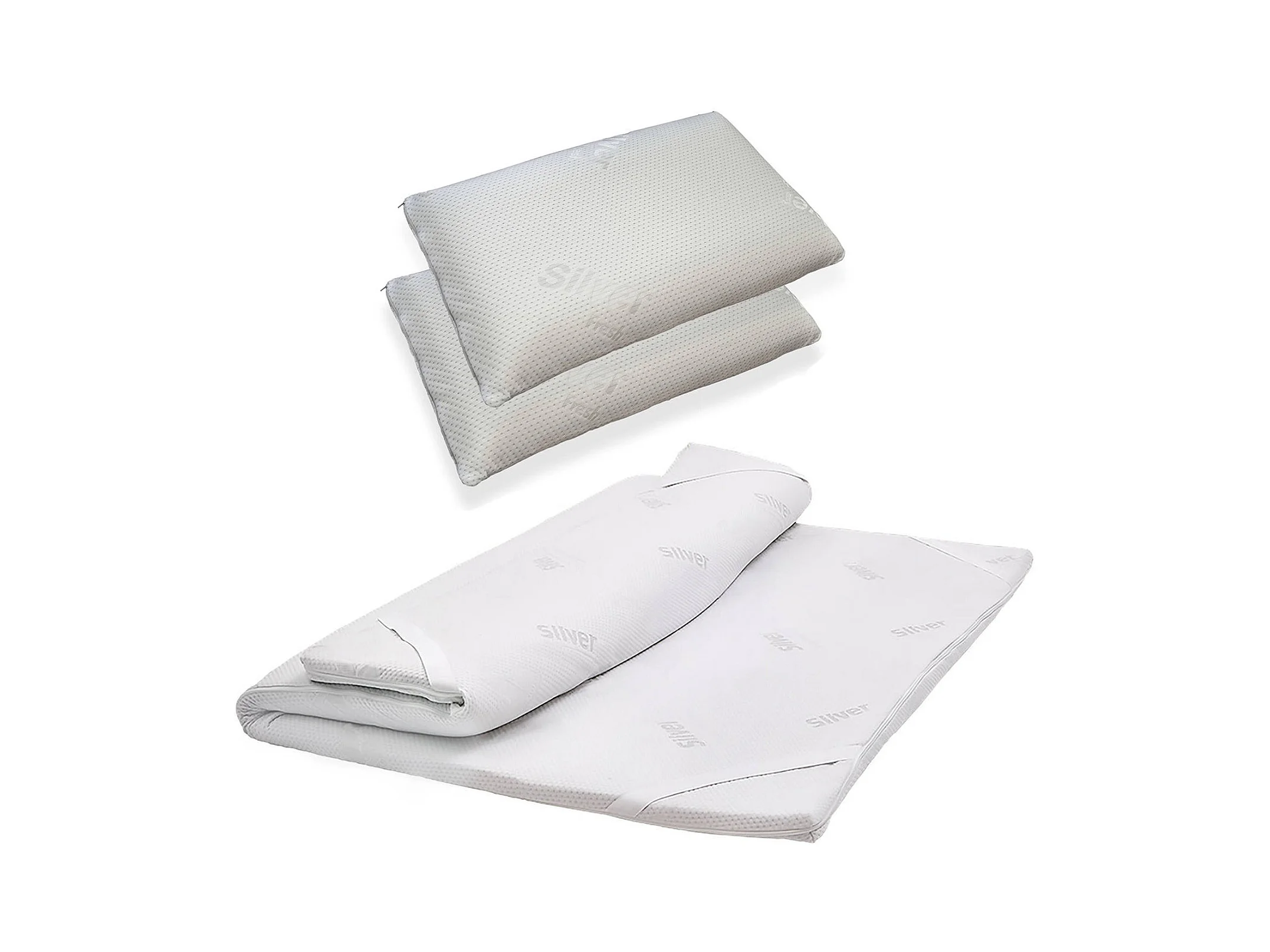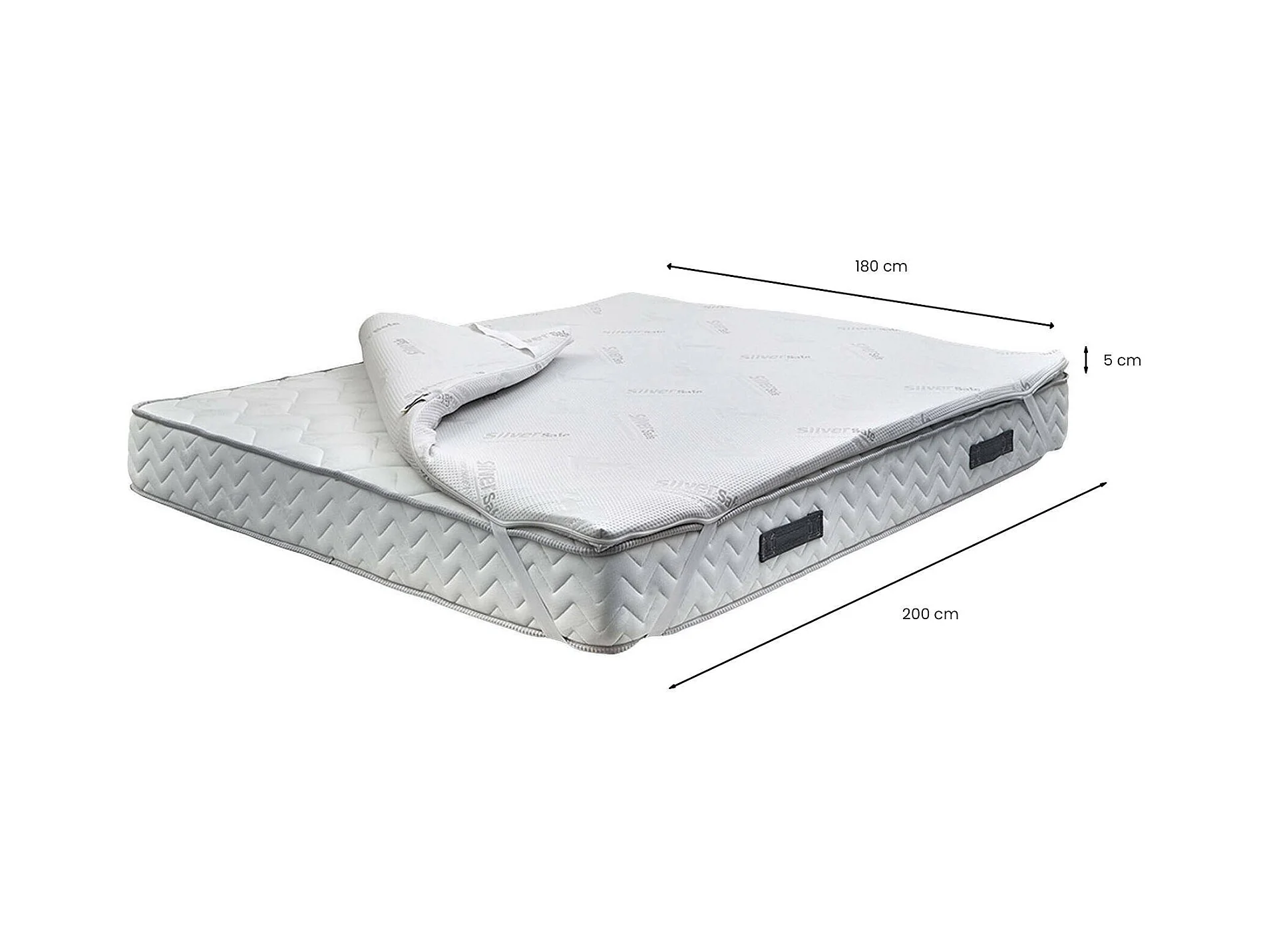 Doppelbett Topper Dmarino, Auflagenset mit Kissen, Memory Foam Topper, hypoallergener und atmungsaktiver Topper, 100 % Italy, 180x200h5 cm