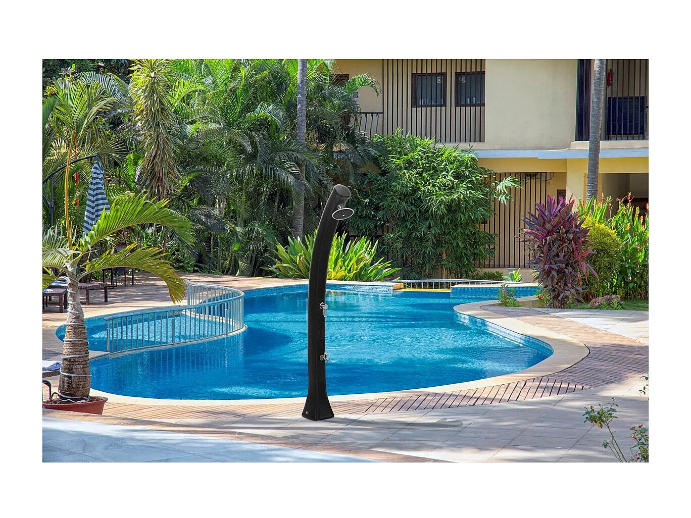 Douche Solaire Extérieure Happy 4x4 44L Formidra - 222x26x29cm Polyéthylène HD Rince Pieds + Mitigeur + Pommeau - - Bleu avec ri