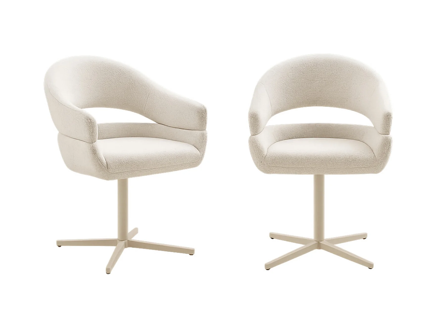 Lot de 2 fauteuils de salle à manger DOLY – Tissu beige pivotant & pied en acier beige