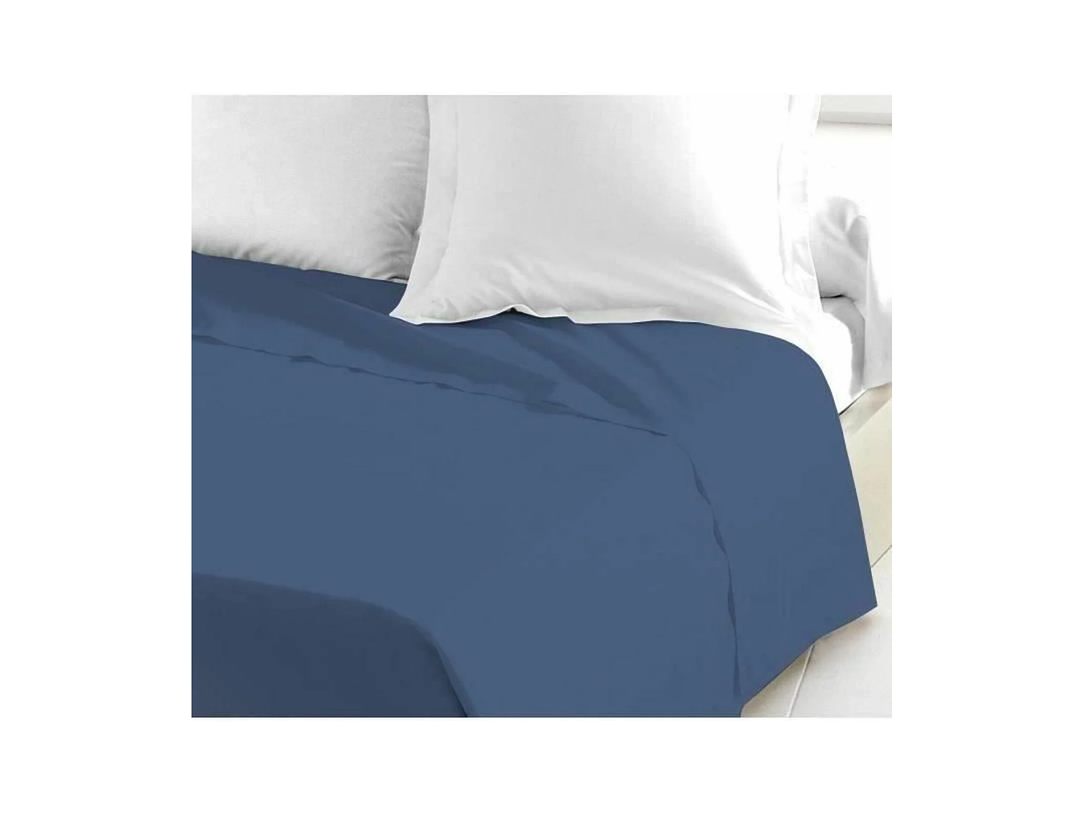 Drap plat 1 personne 180x290 cm satin de coton bleu