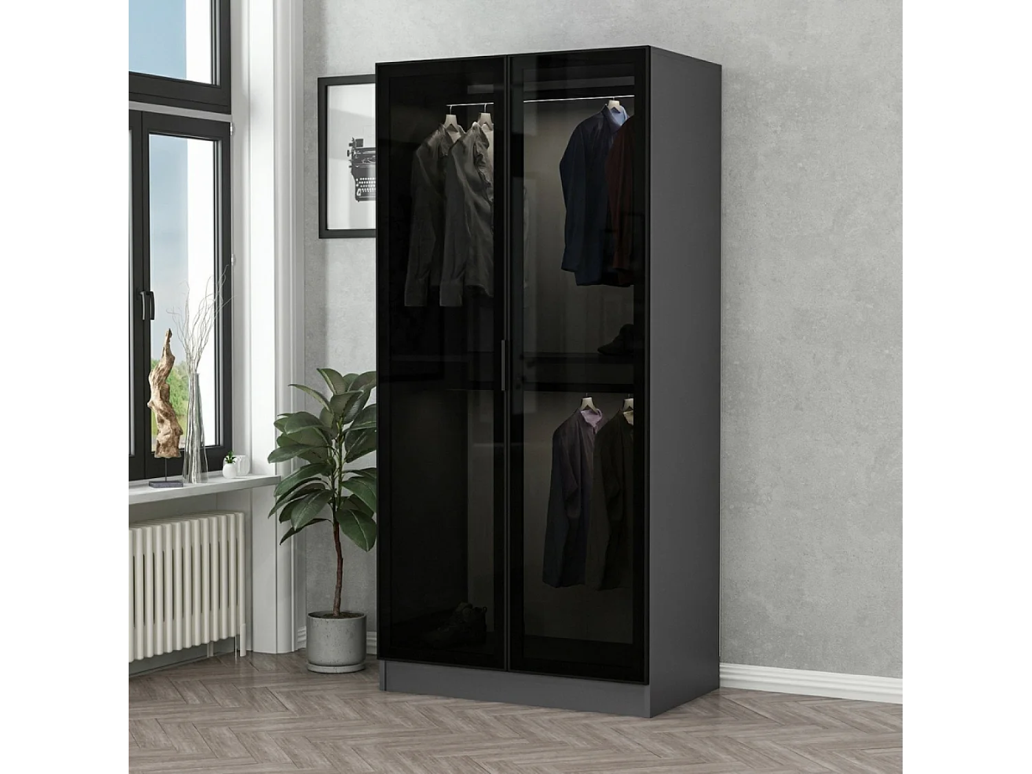 Dressing anthracite avec étagère et penderies - 90 x 210 x 52 cm RIVOLI