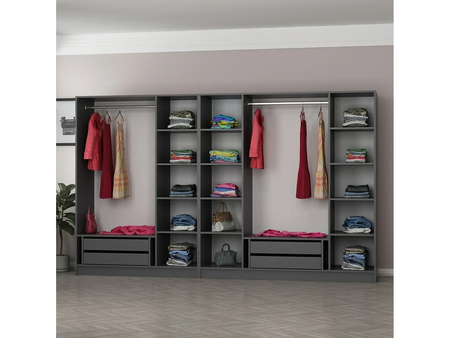 Dressing avec étagères et penderies - 21 espaces de stockage - 315 X 210 X 52 cm MONTMARTRE