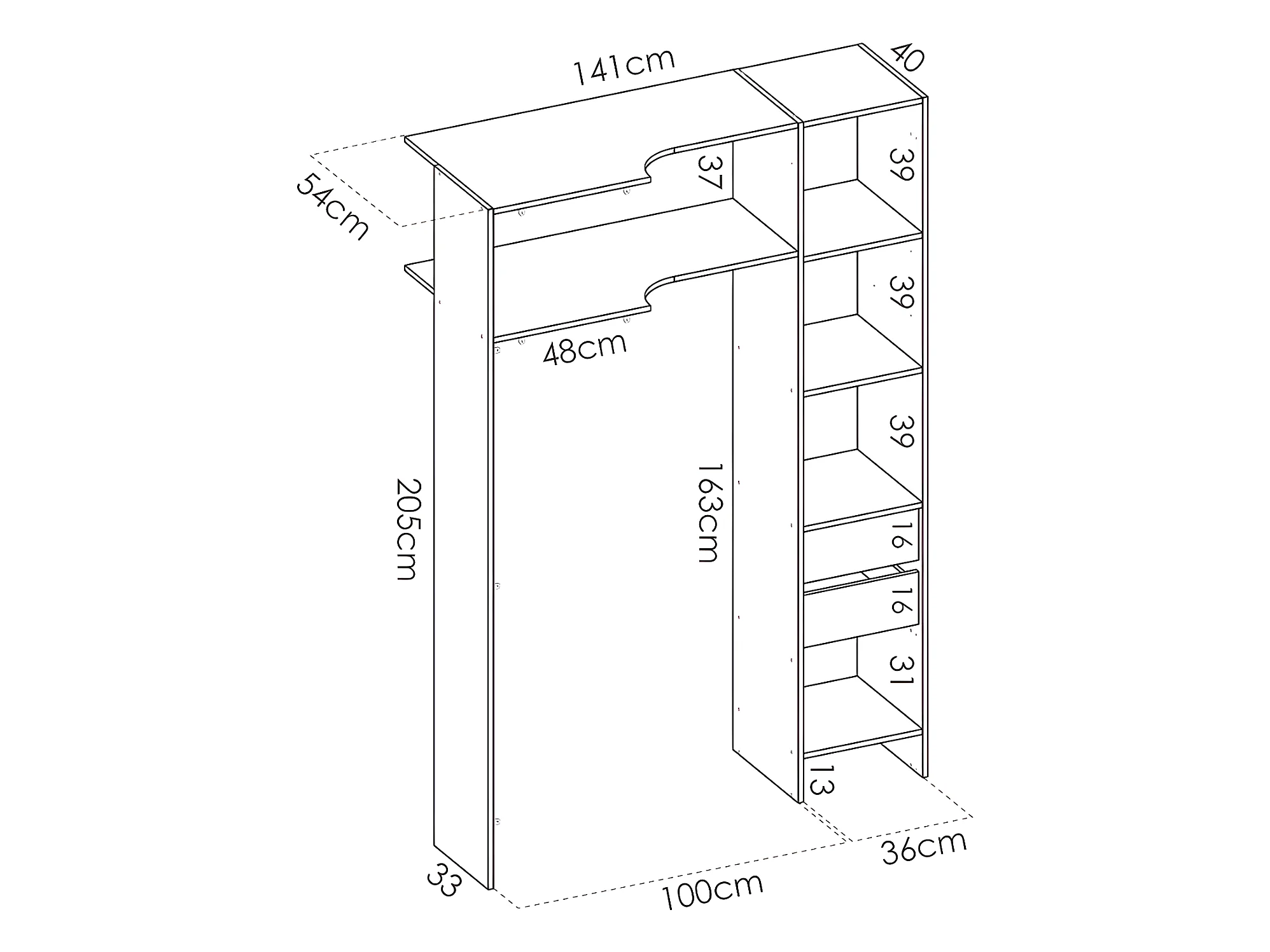 • 3 colonnes de lingères dont une fermée par une porte