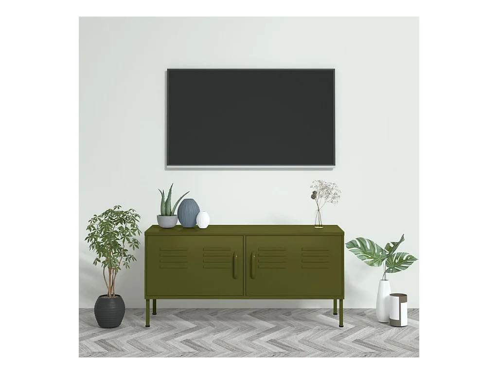 Lysri Meuble TV vert olive 100,5x39x60,5 cm acier