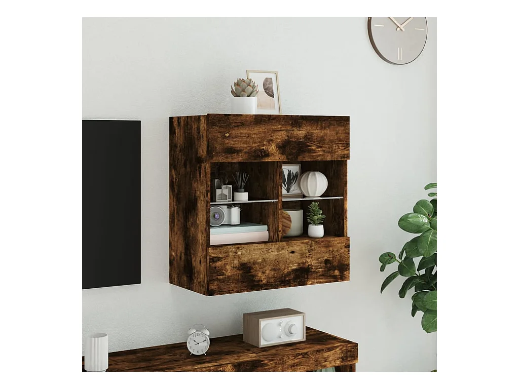 DuBois Meuble TV mural avec lumières LED chêne fumé 40x30x60,5 cm