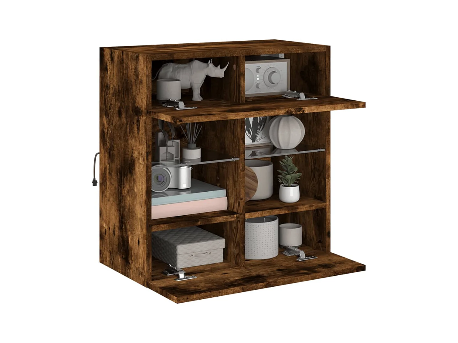 DuBois Meuble TV mural avec lumières LED chêne fumé 58,5x30x60,5 cm