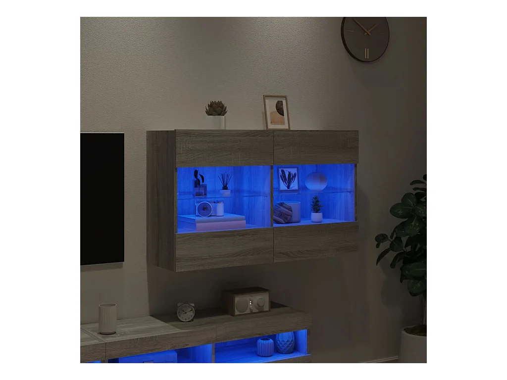 Gerben Meubles TV muraux et lumières LED 2pcs sonoma gris 80x35x31 cm