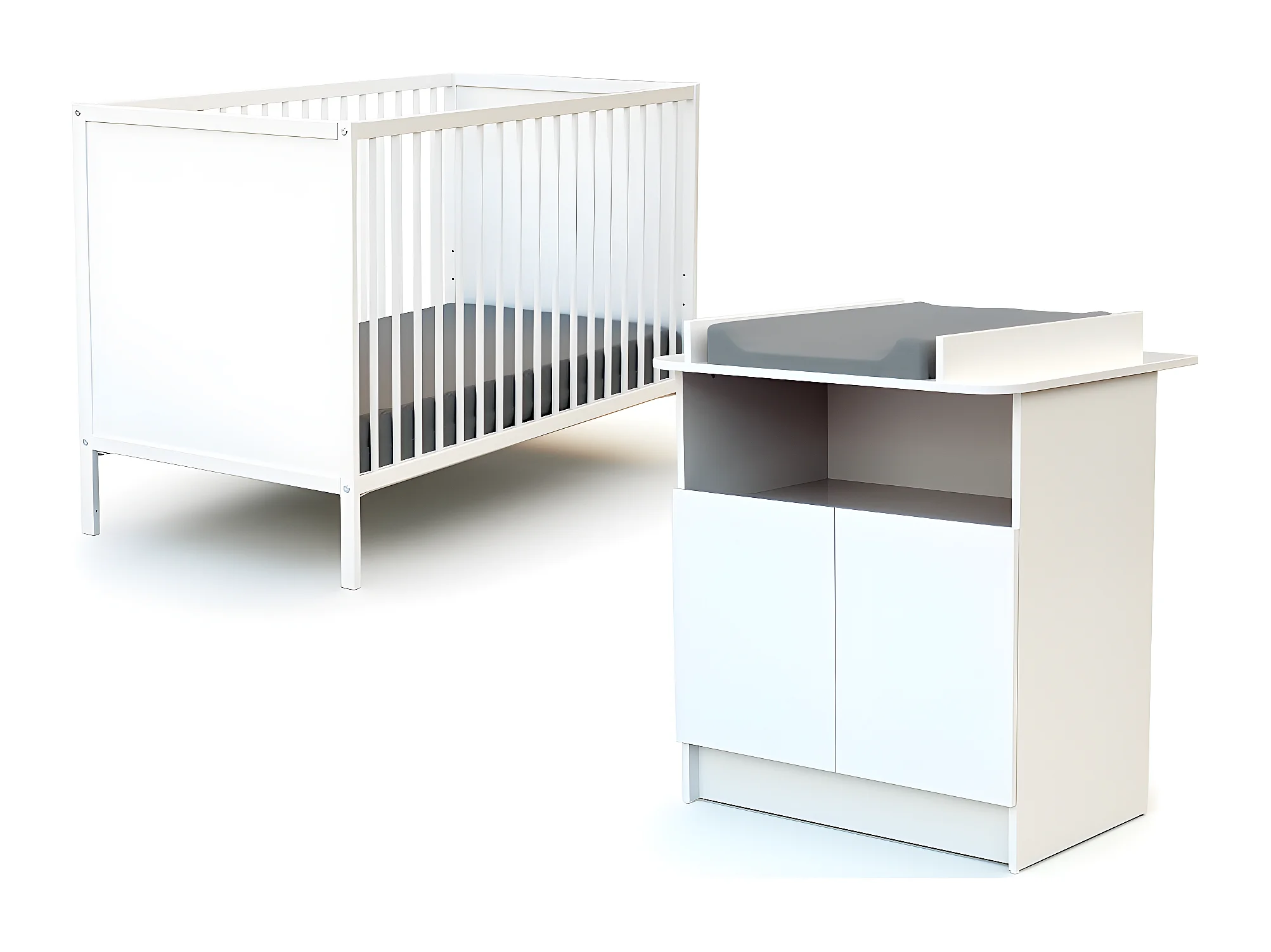 Chambre bébé lit et commode à langer en bois Blanc ALBA