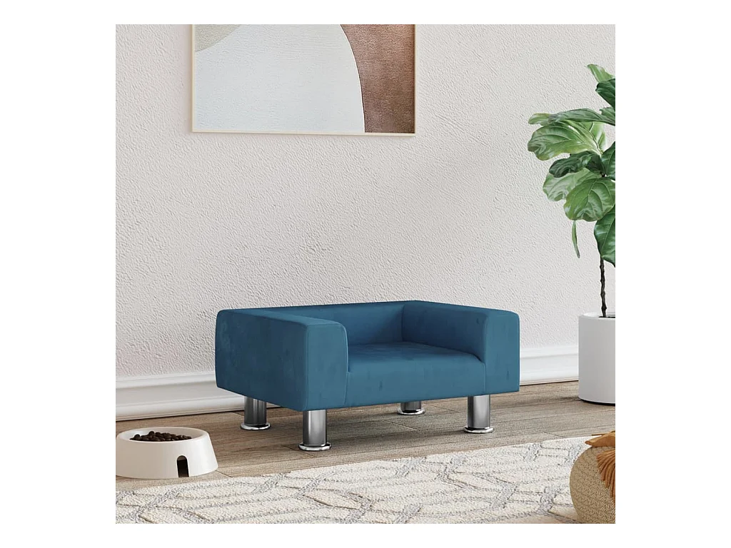 Lit pour chien avec extension bleu 100x50x30 cm velours