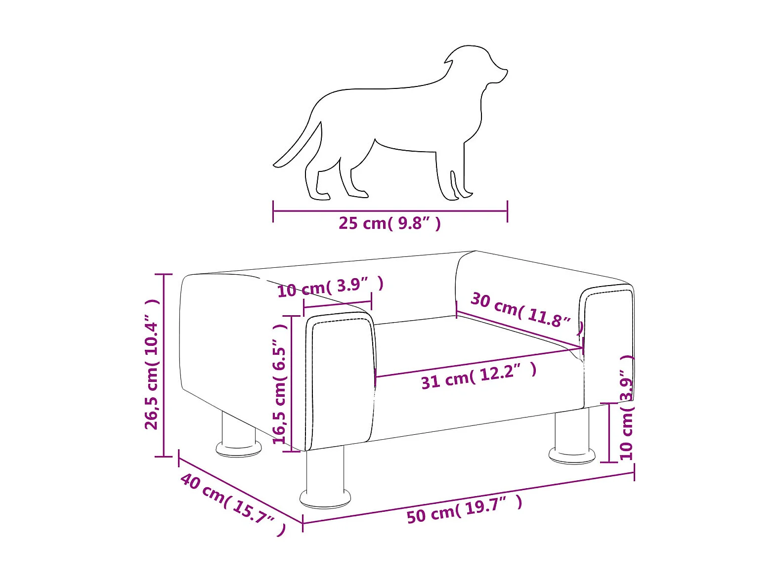 Lit pour chien gris foncé 66x40x45 cm velours