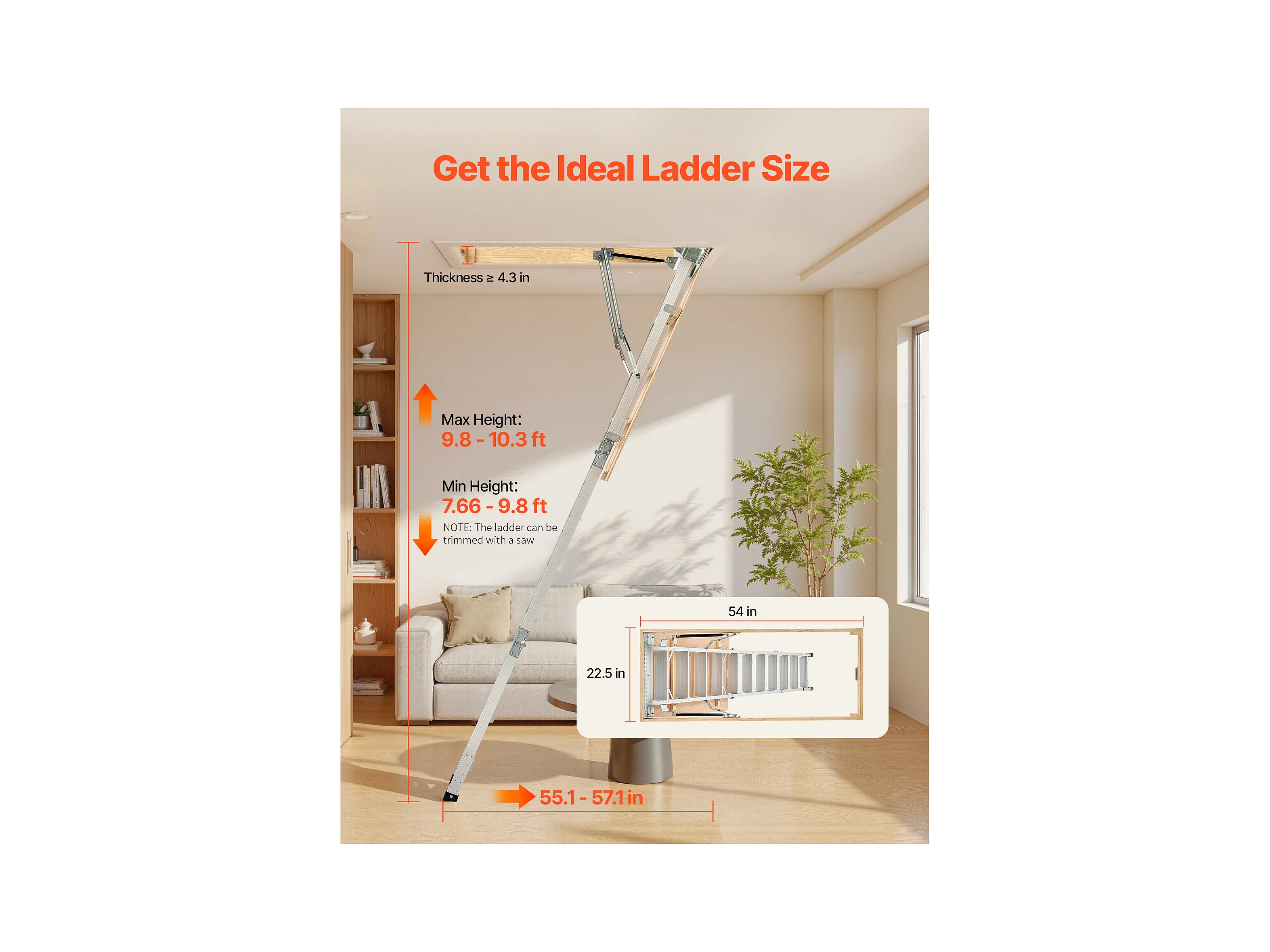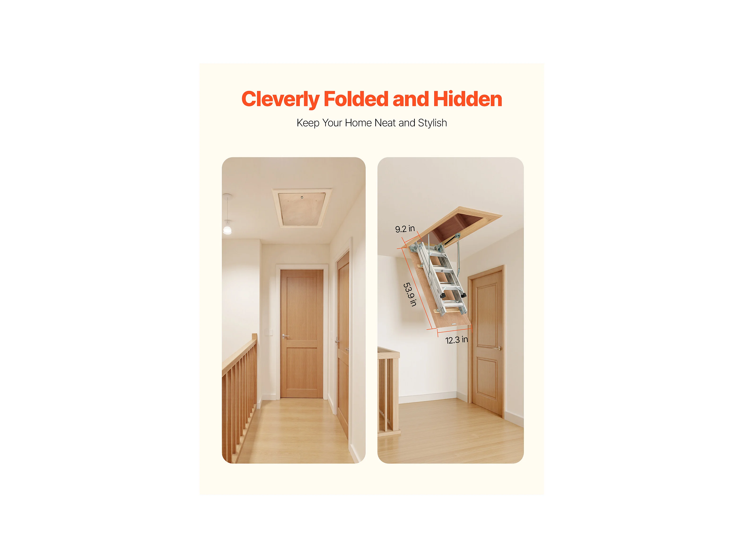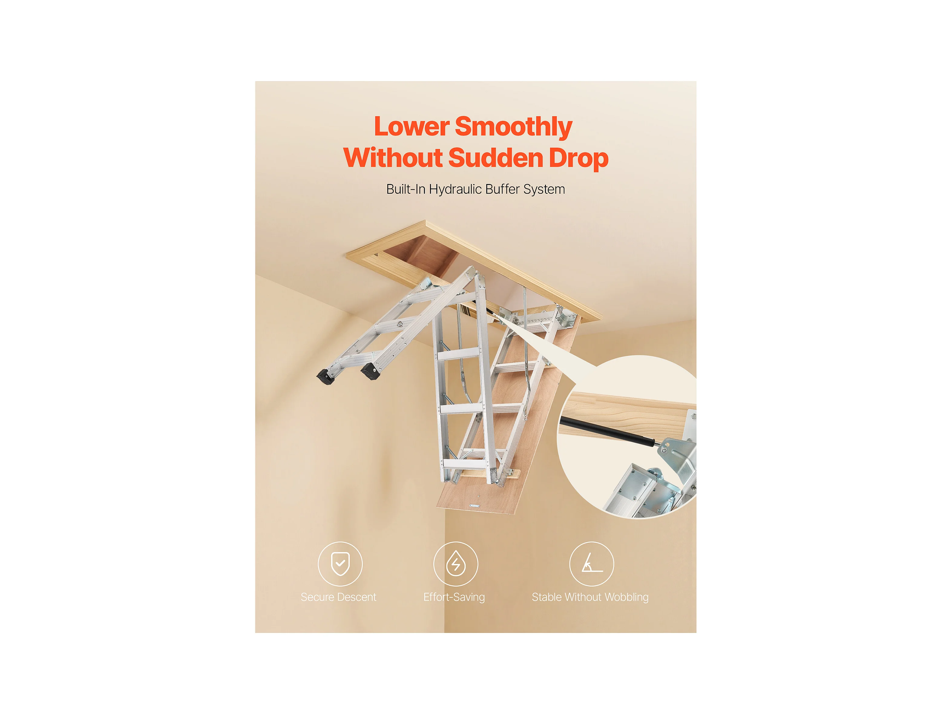 Échelle de Grenier SucceBuy Pliable, Capacité de Charge 170 kg, Adaptée à une Hauteur d'Installation de 3 à 3,13 m, Structure en Aluminium Polyvalente
