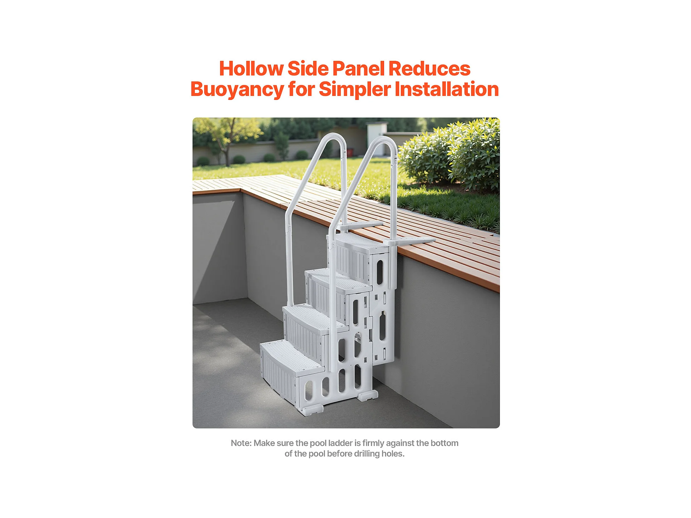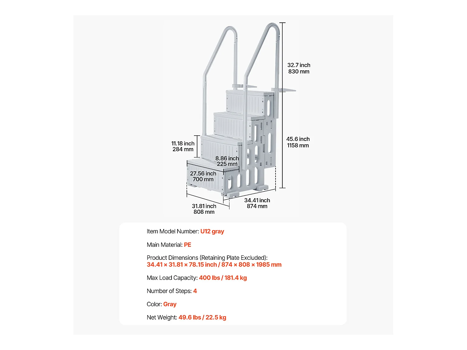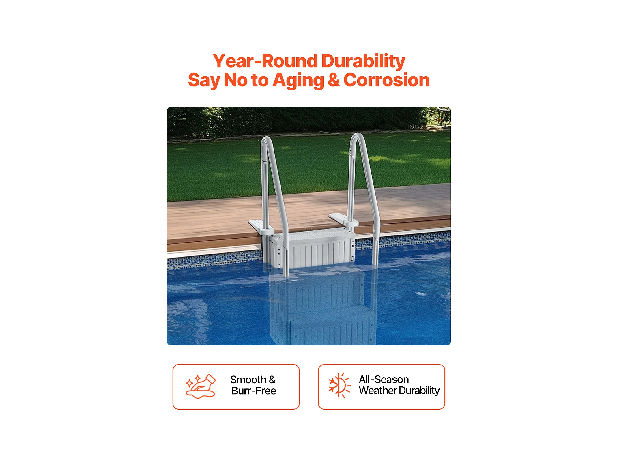 Échelle de Piscine SucceBuy à 4 Marches, Grise, 2 Rampes, Capacité de 181.4kg pour Piscine de 122-137 cm