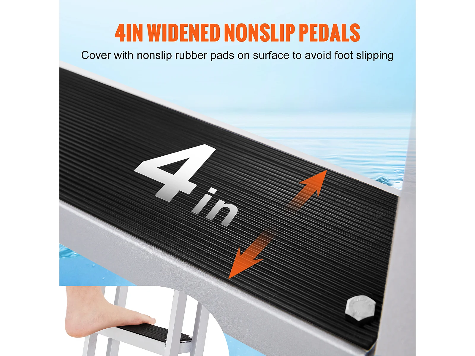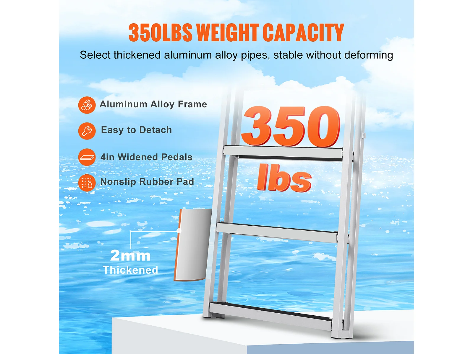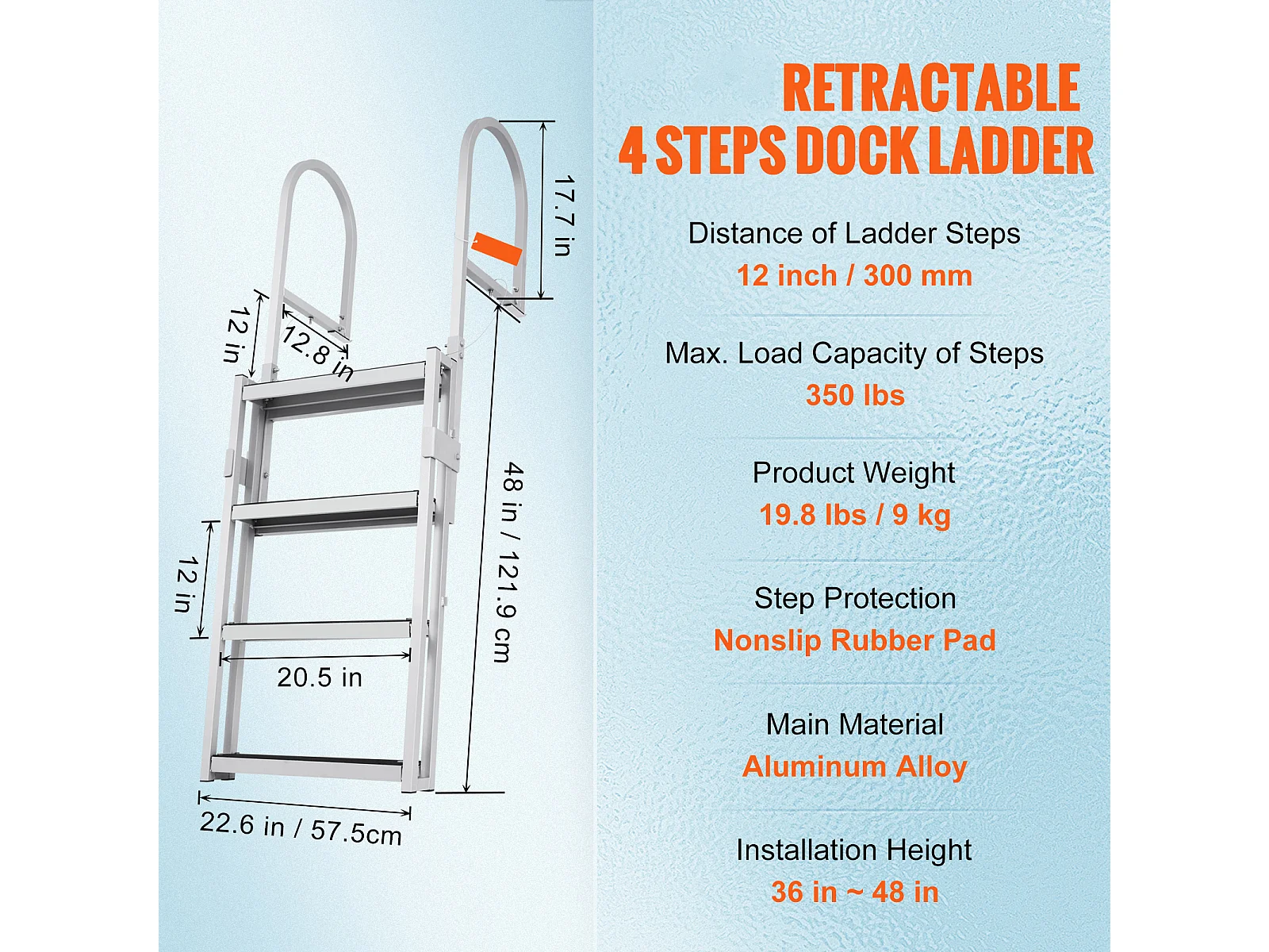 Échelle de Quai Rabattable en Aluminium SucceBuy, 4 Marches, Capacité de 159 kg, pour Embarquement à Bord de Bateaux, Lacs, Piscines