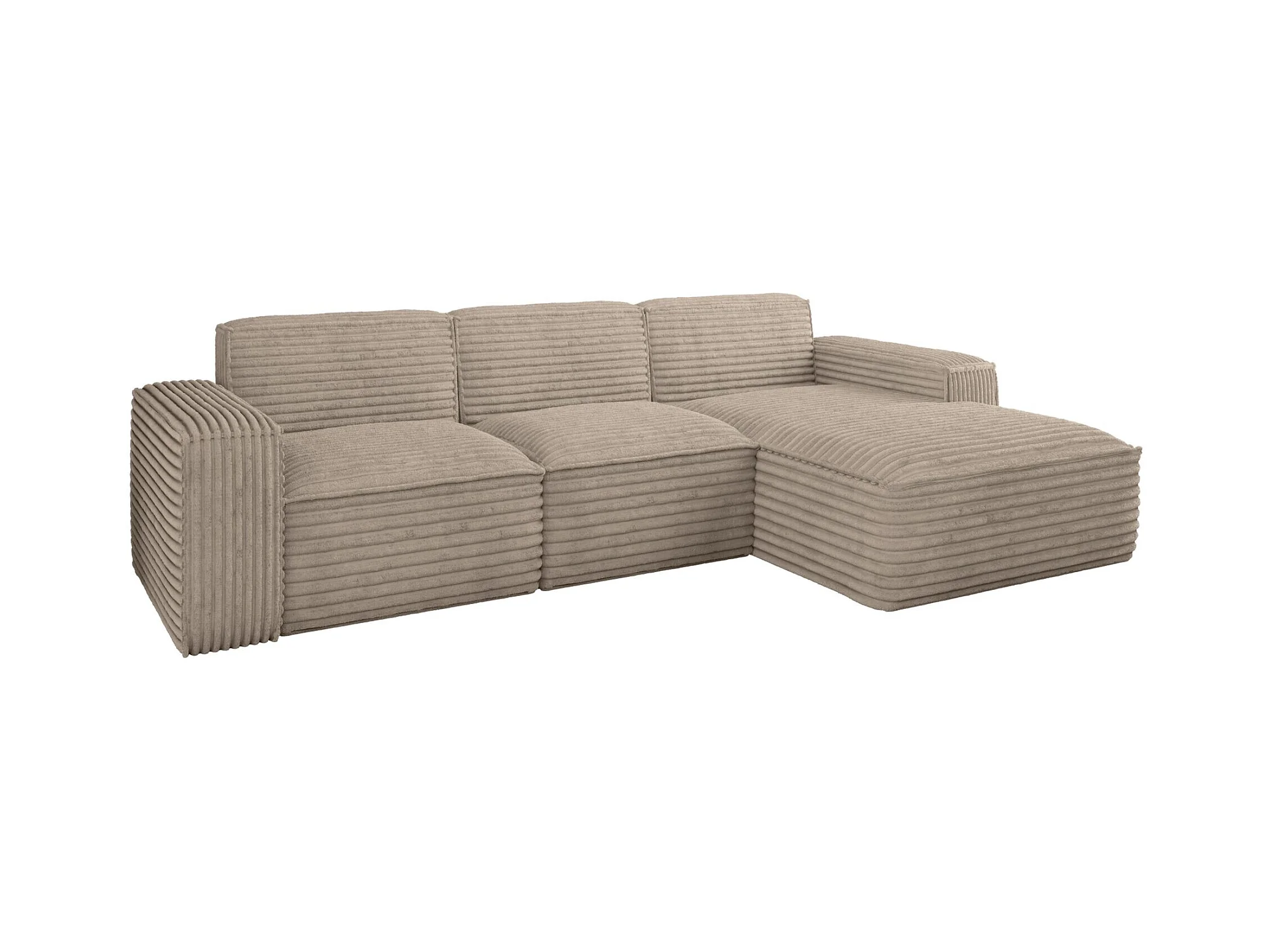 Cosmopolitan Design - Canapé d'angle droit "Arendal" 4 places en chenille avec un effet côtelé beige foncé - 284x166x70cm