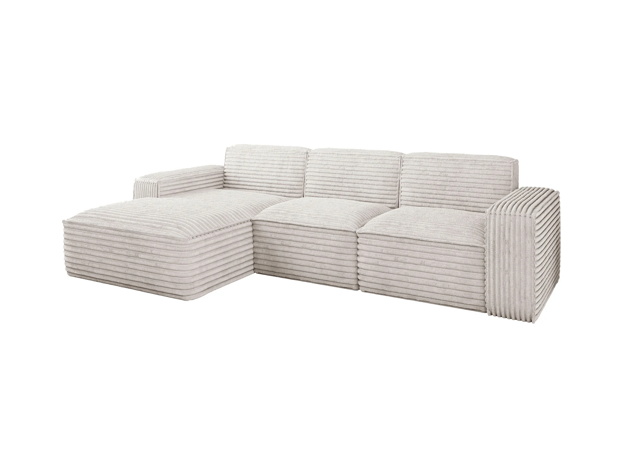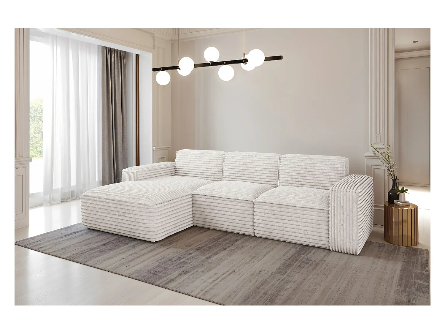 Cosmopolitan Design - Canapé d'angle gauche "Arendal" 4 places en chenille avec un effet côtelé ivoire - 284x166x70cm