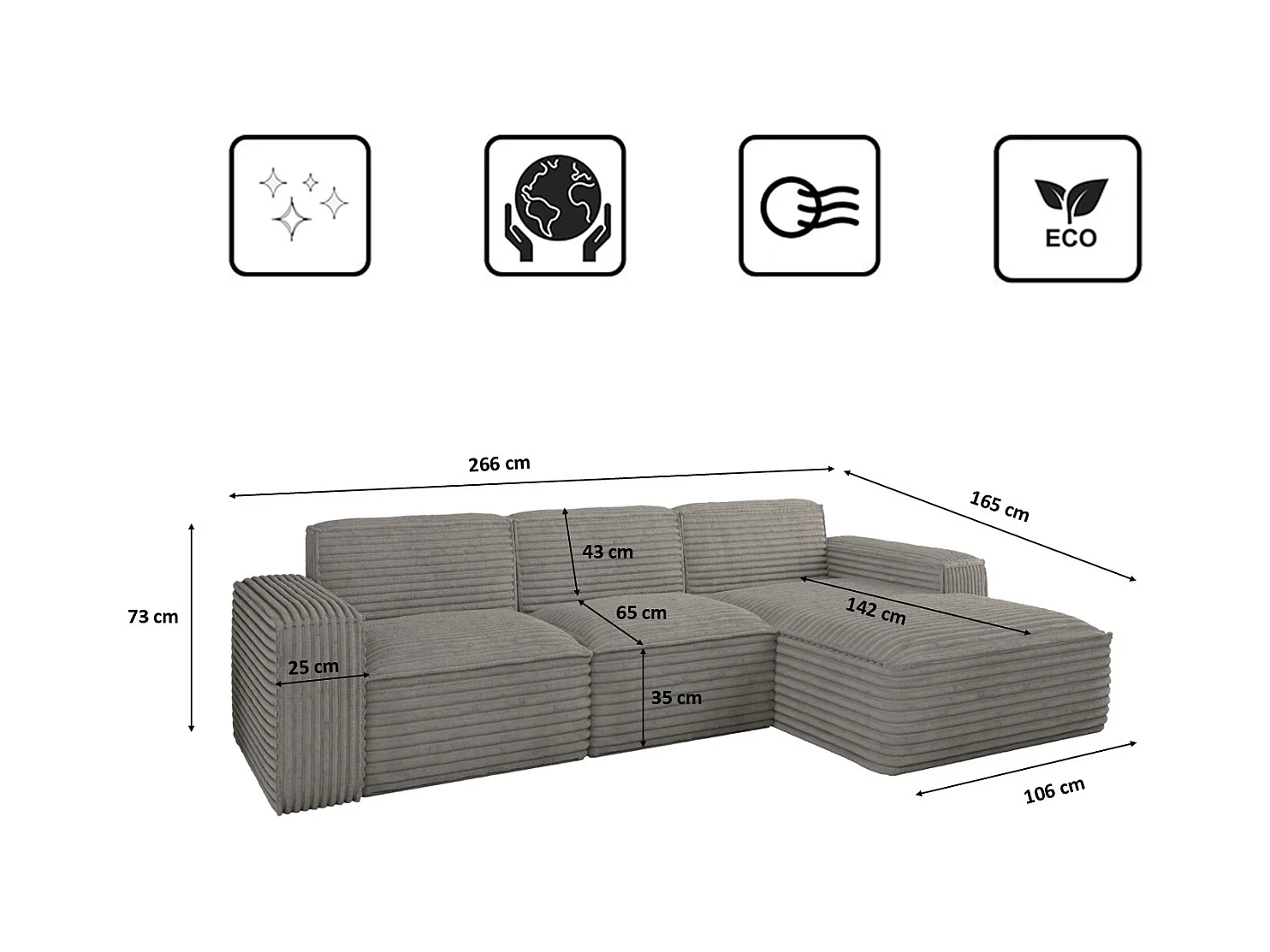 Cosmopolitan Design - Canapé d'angle droit "Arendal" 4 places en chenille avec un effet côtelé gris foncé - 284x166x70cm