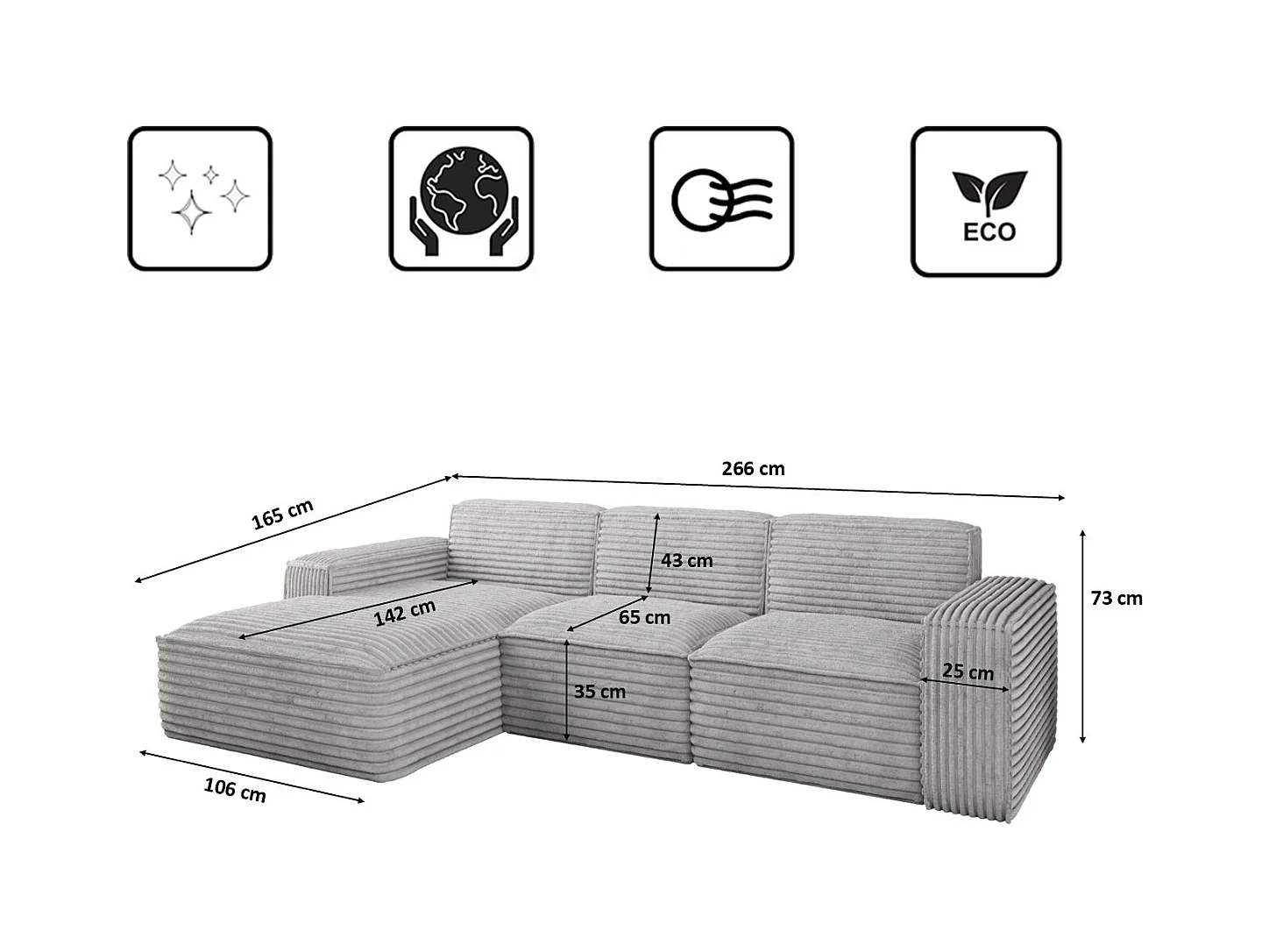 Cosmopolitan Design - Canapé d'angle gauche "Arendal" 4 places en chenille avec un effet côtelé gris foncé - 284x166x70cm