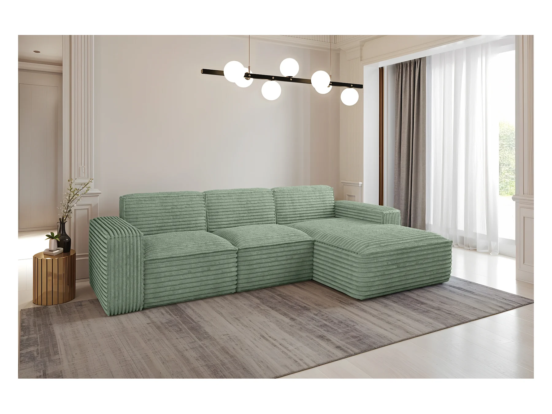 Canapé d'angle Modena en L, tissu Poso, vert clair, droit
