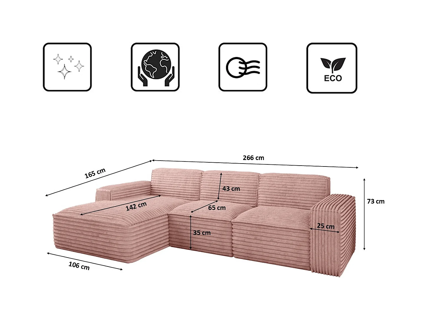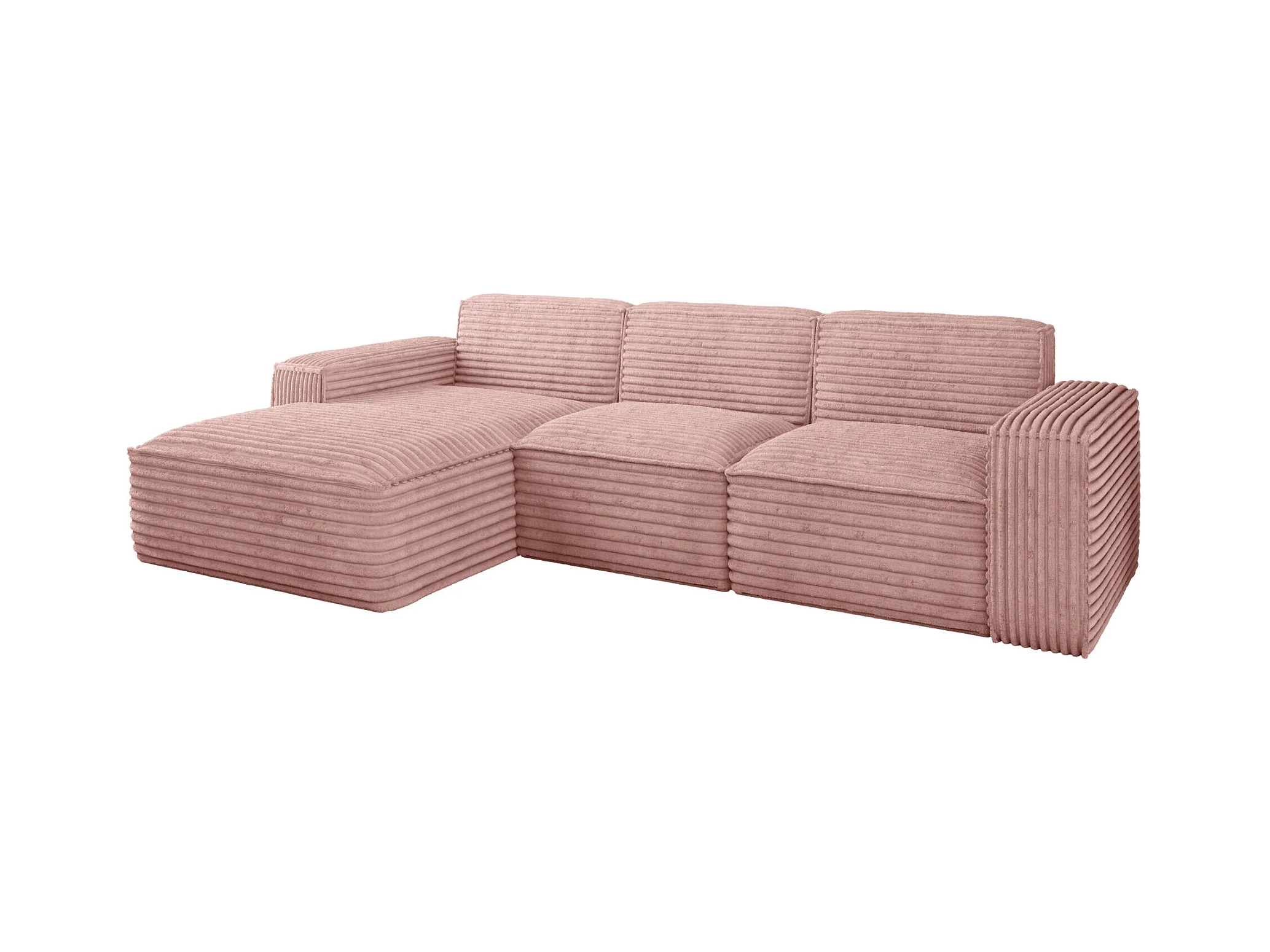 Canapé d'angle Modena en L, tissu Poso, rose, gauche