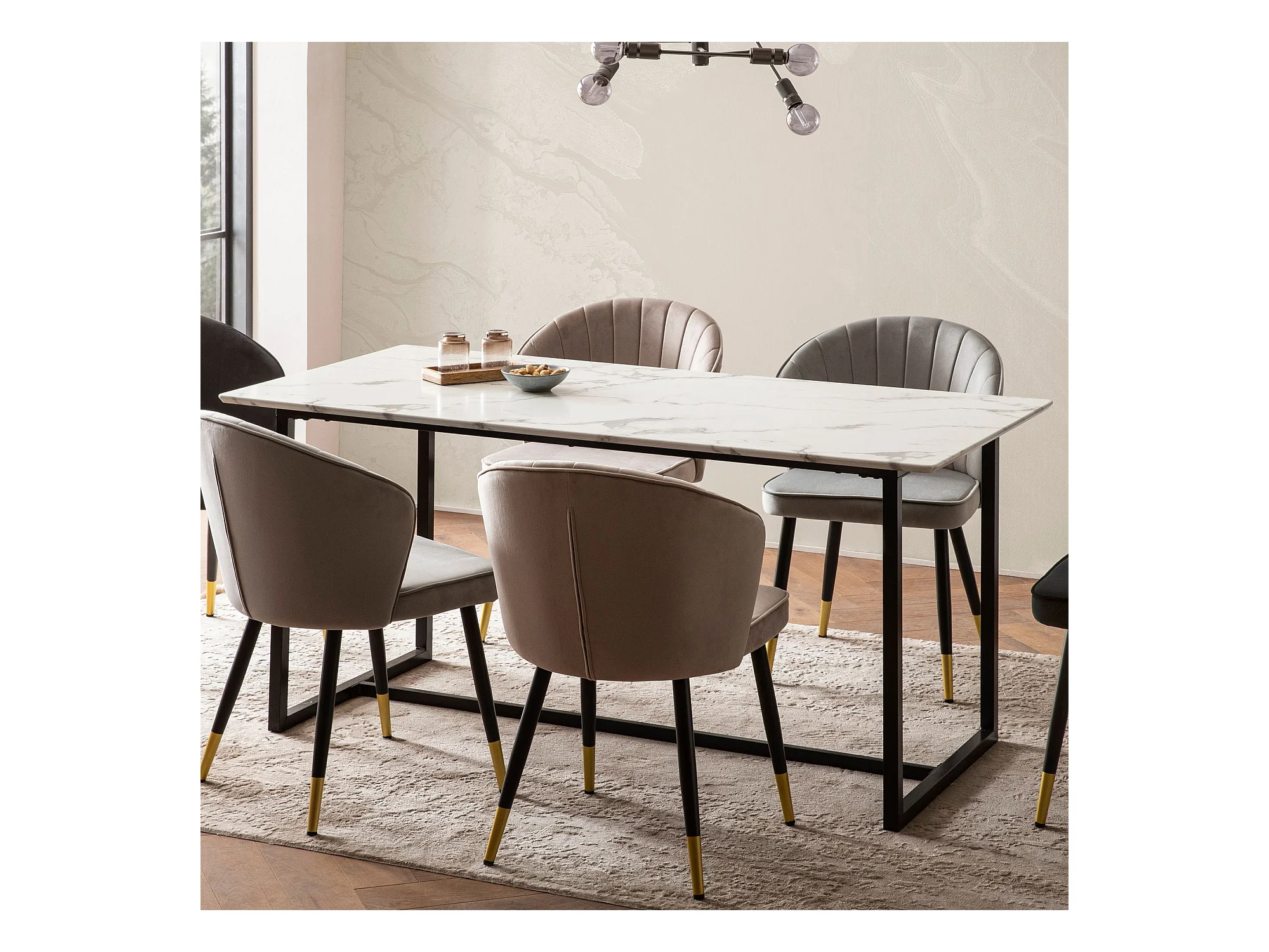 Eettafel 140x80x76 cm Wit Modern Marmer Effect, Kleine Rechthoekige Keukentafel met Metalen Poten