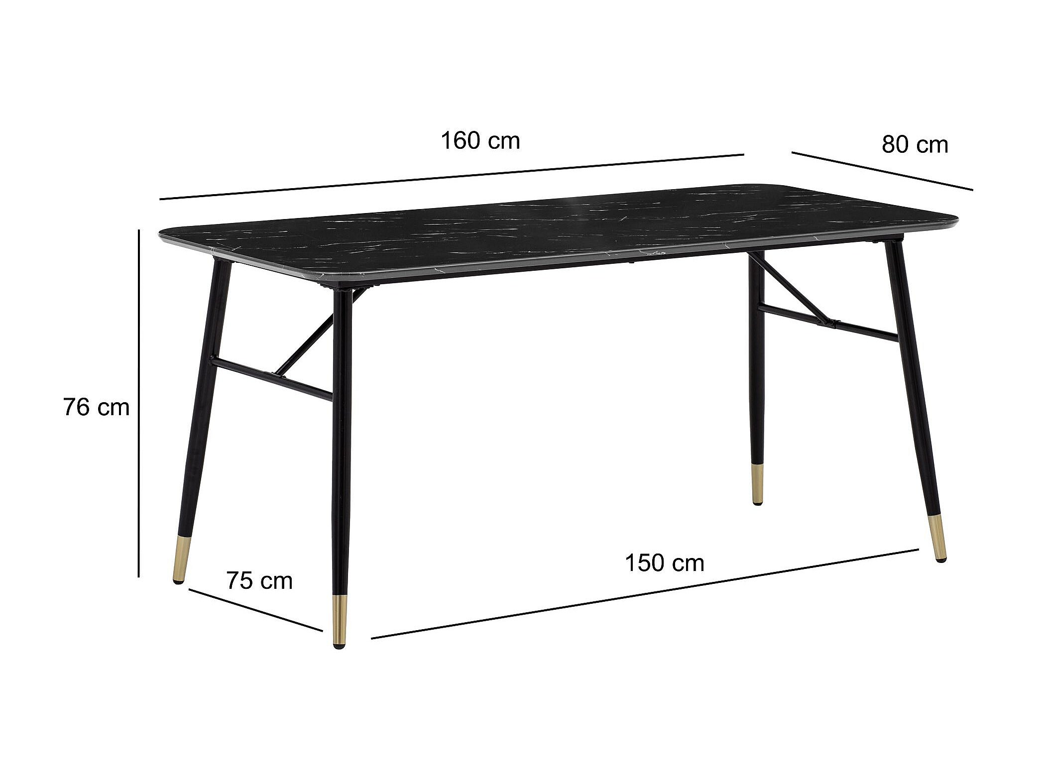 Eettafel 180x90x76 cm Wit Modern Marmer Effect, Grote Rechthoekige Keukentafel met Metalen Poten