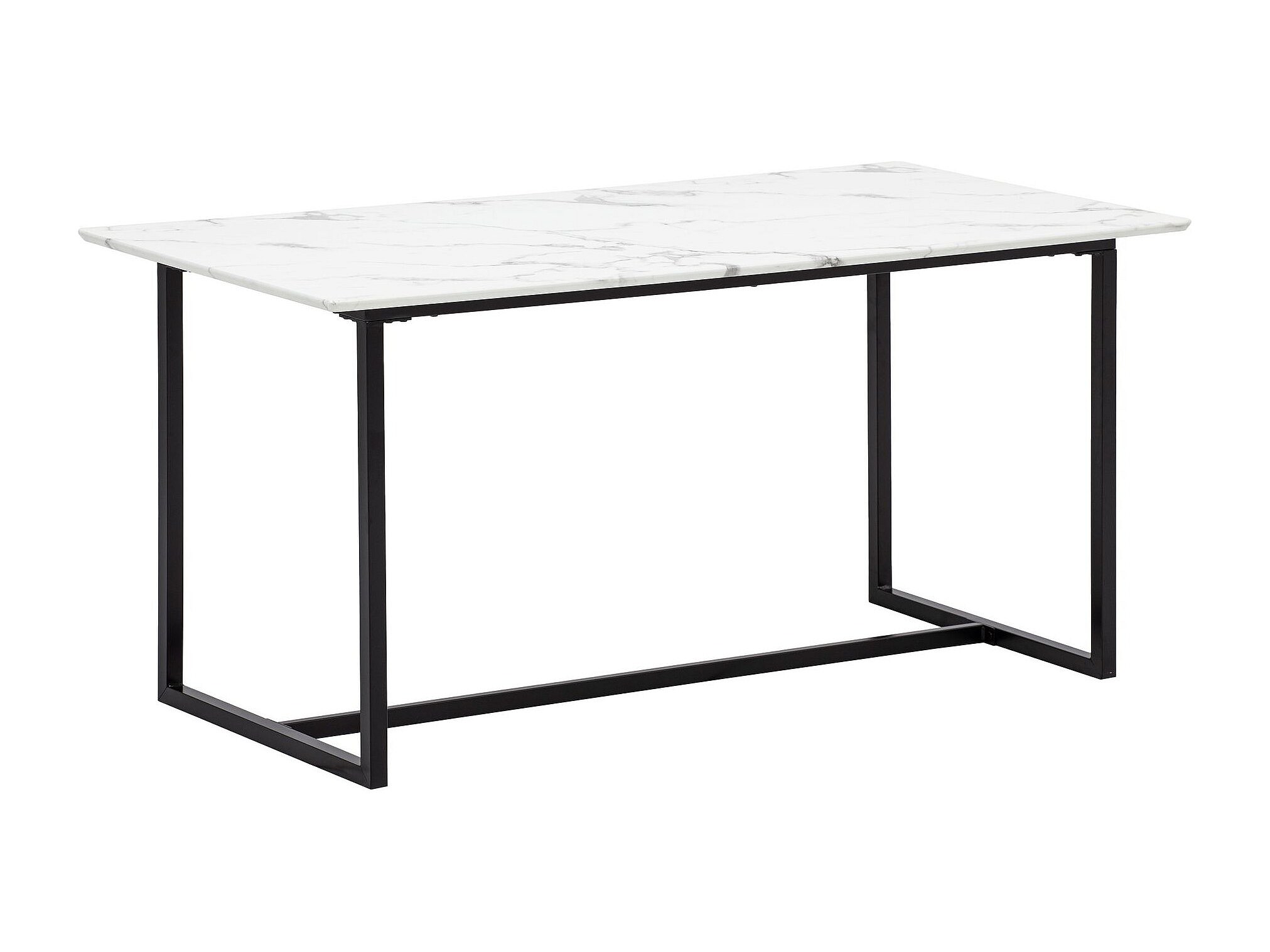 Eettafel 180x90x76 cm Zwart Modern Marmer Effect, Grote Keukentafel, Rechthoekige Eettafel met Metalen Poten