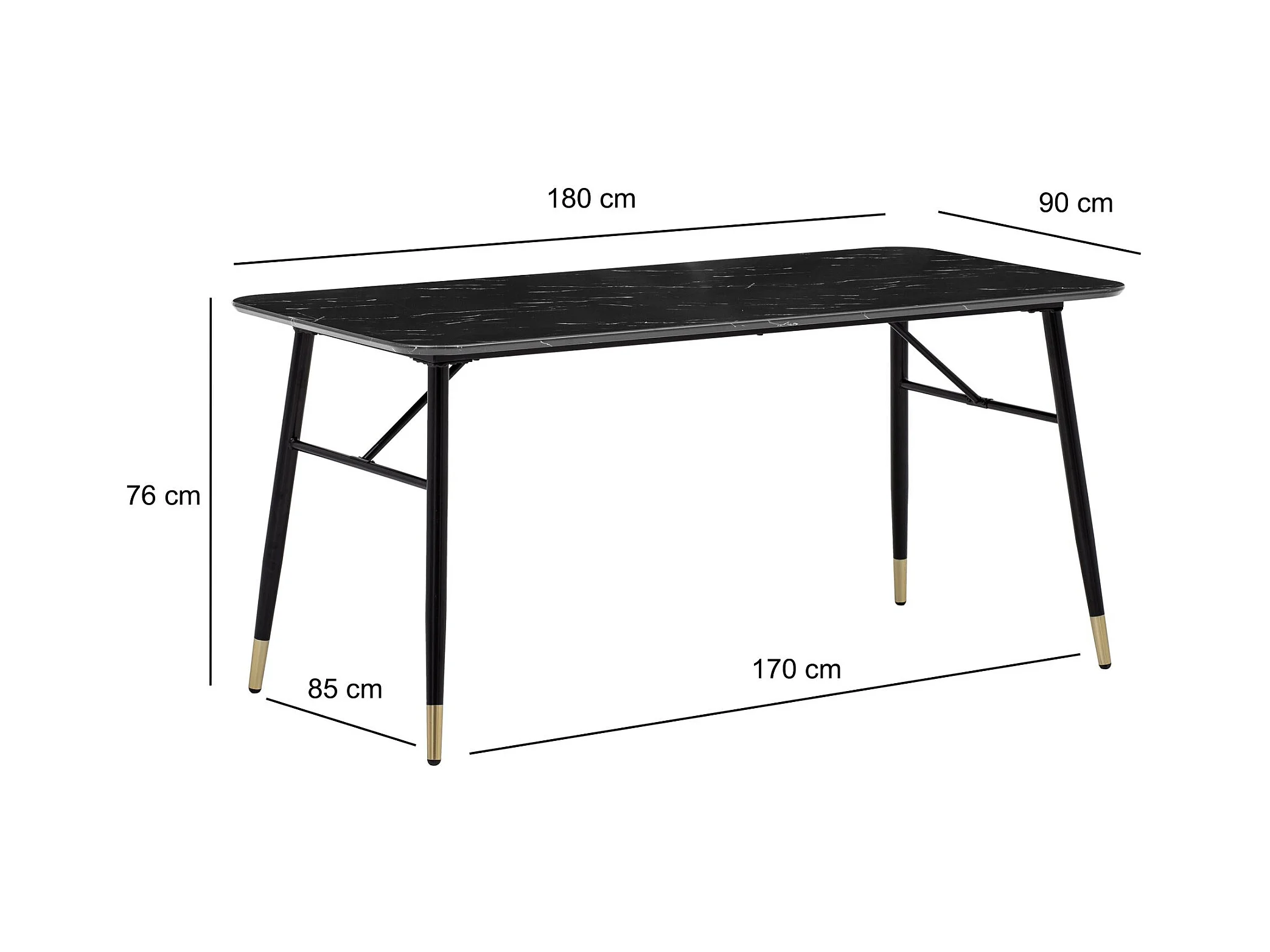 Eettafel 180x90x76 cm Zwart Modern Marmer Effect, Grote Rechthoekige Keukentafel met Metalen Poten