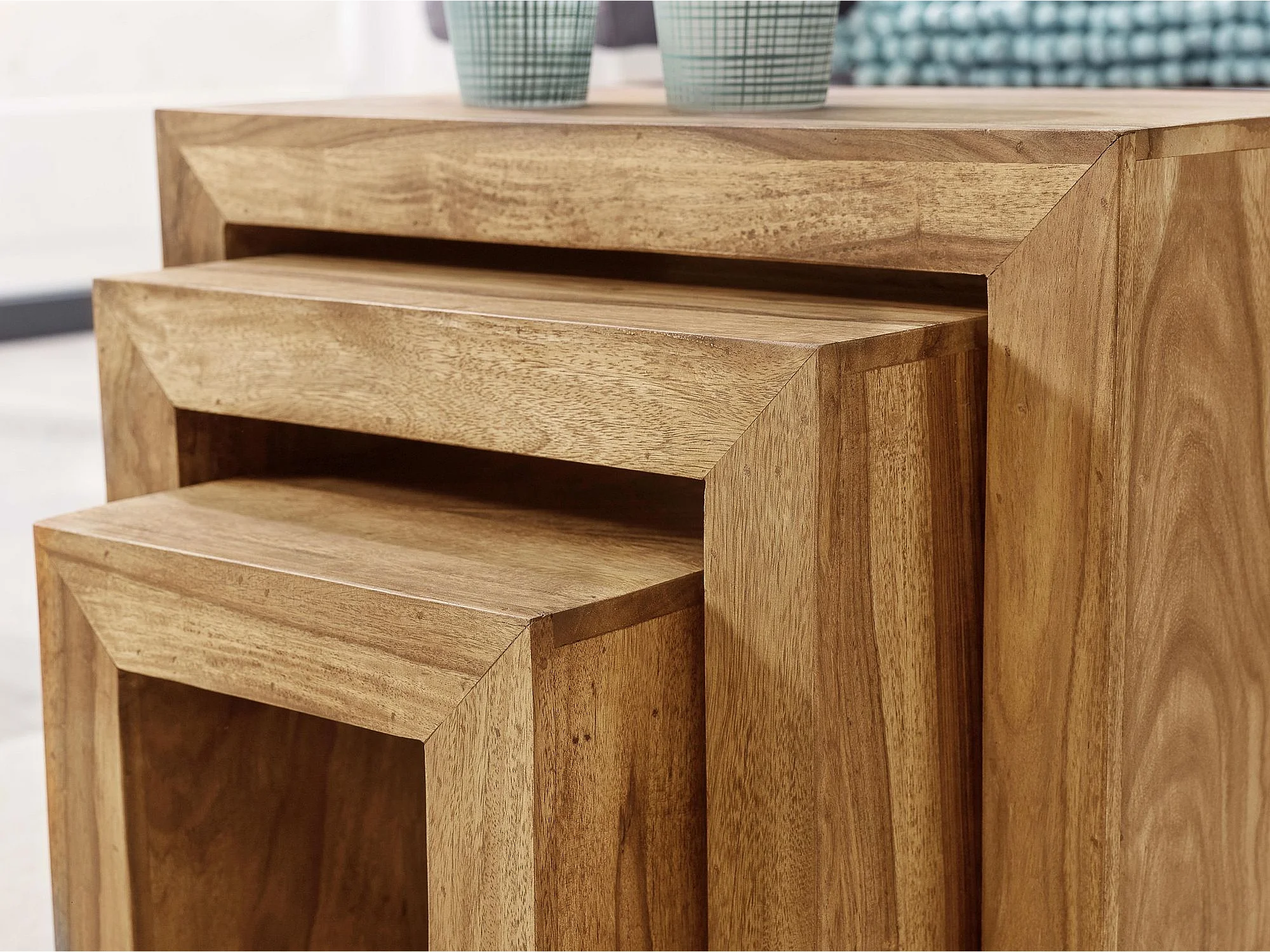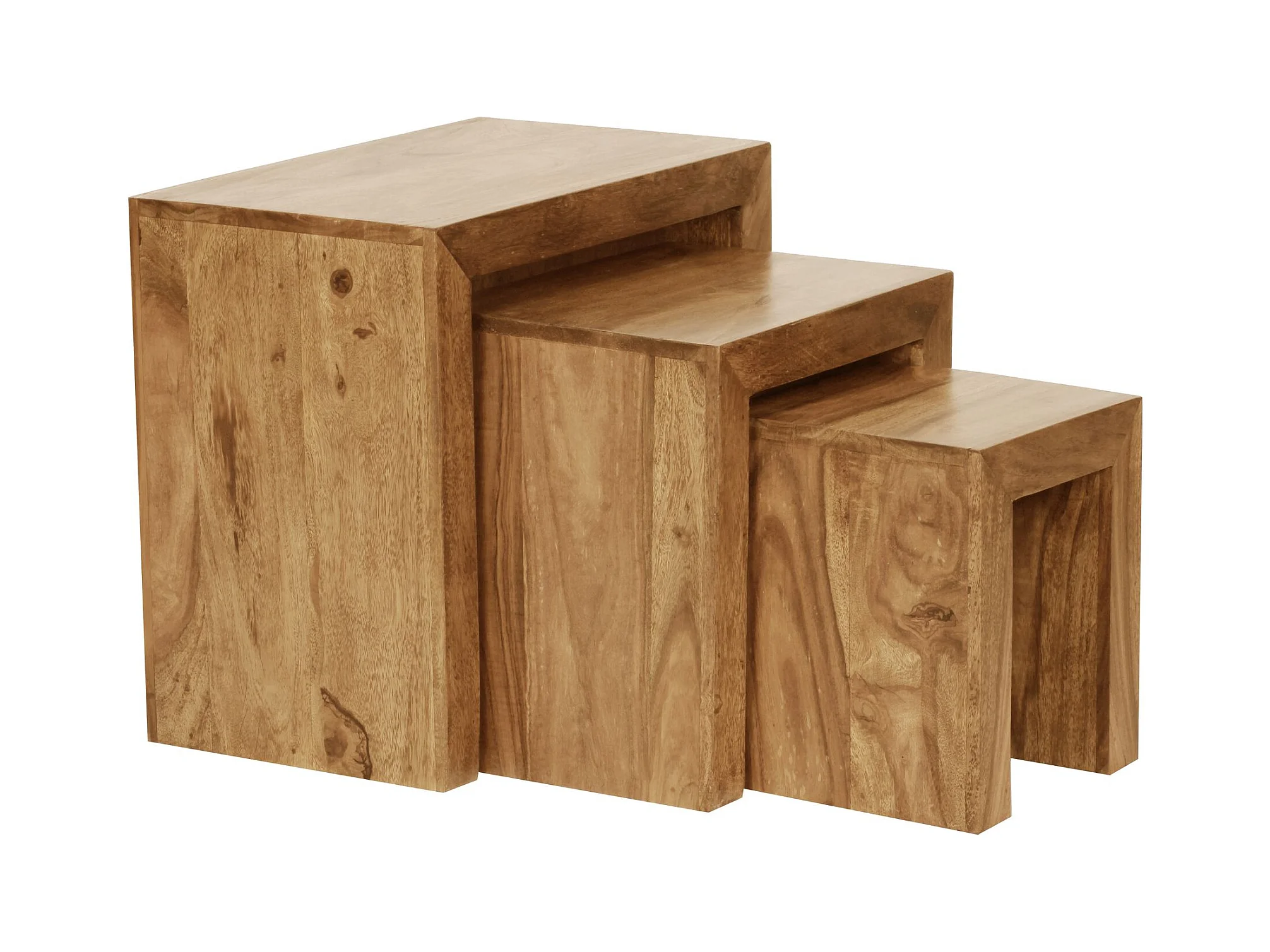 Bijzettafel Set van 3 kolommen Acacia massief houten salontafel ontwerp landelijke stijl vierkante salontafel
