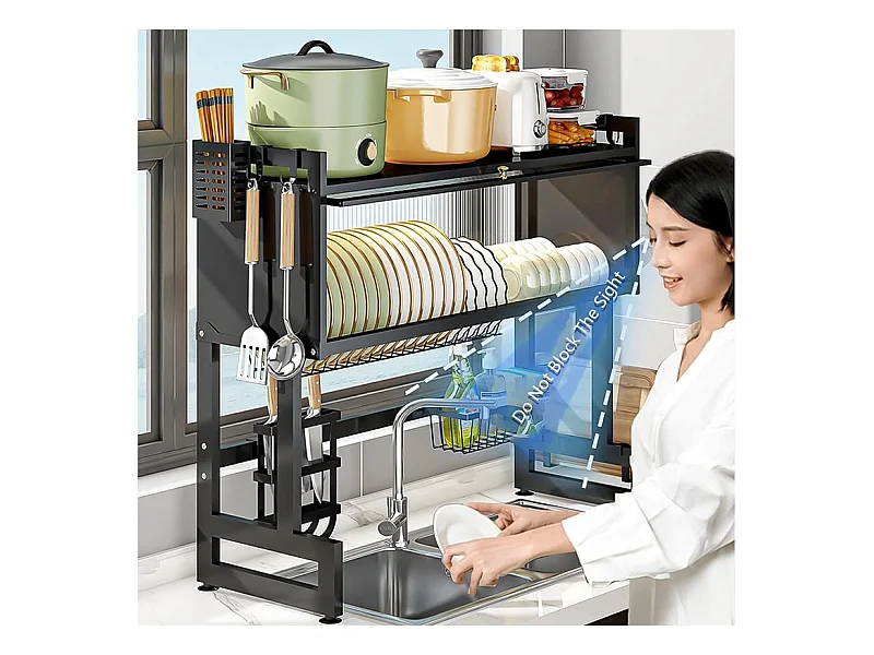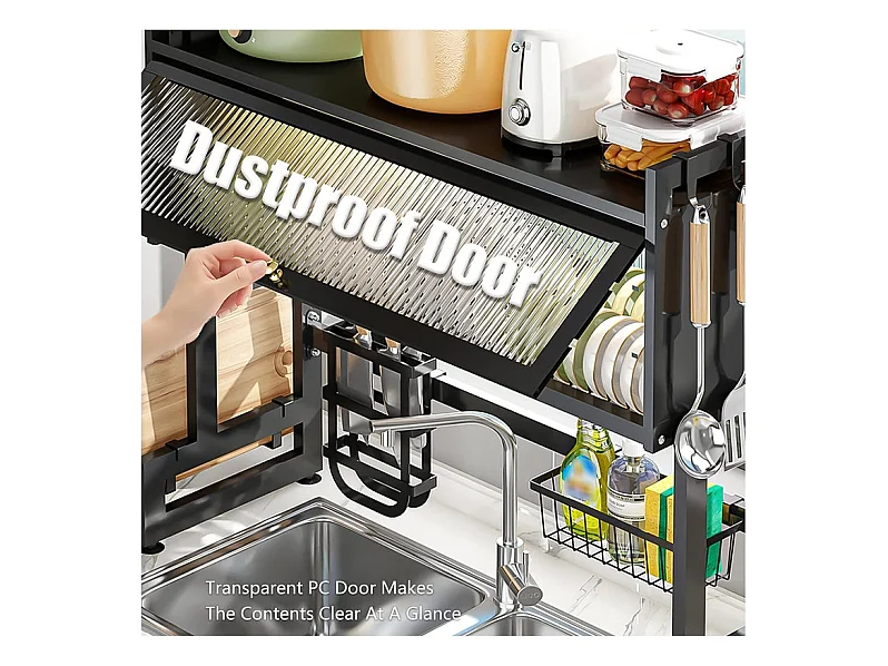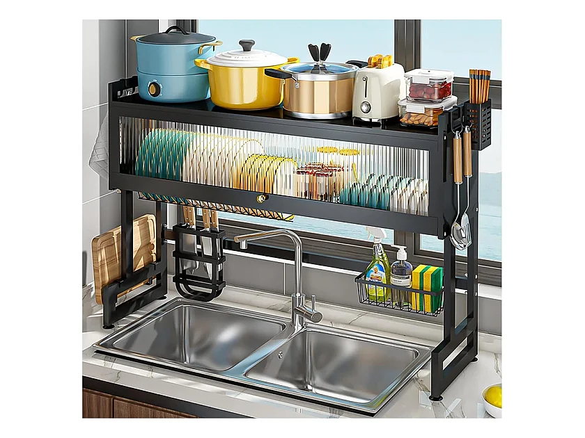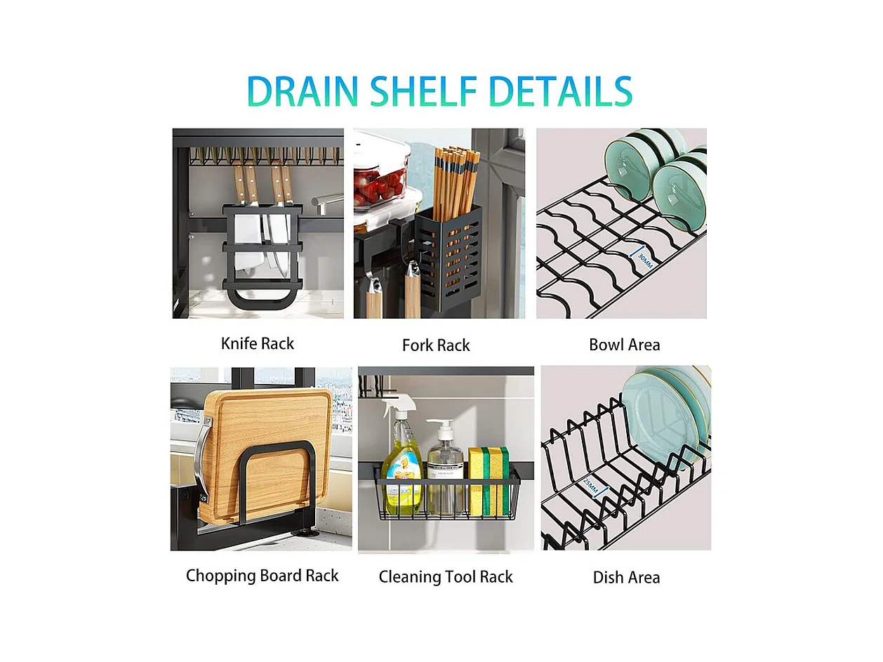 Égouttoir à Vaisselle, 3 Niveaux, avec porte, support de Planche à découper, bac d'égouttage, 85x30x80cm
