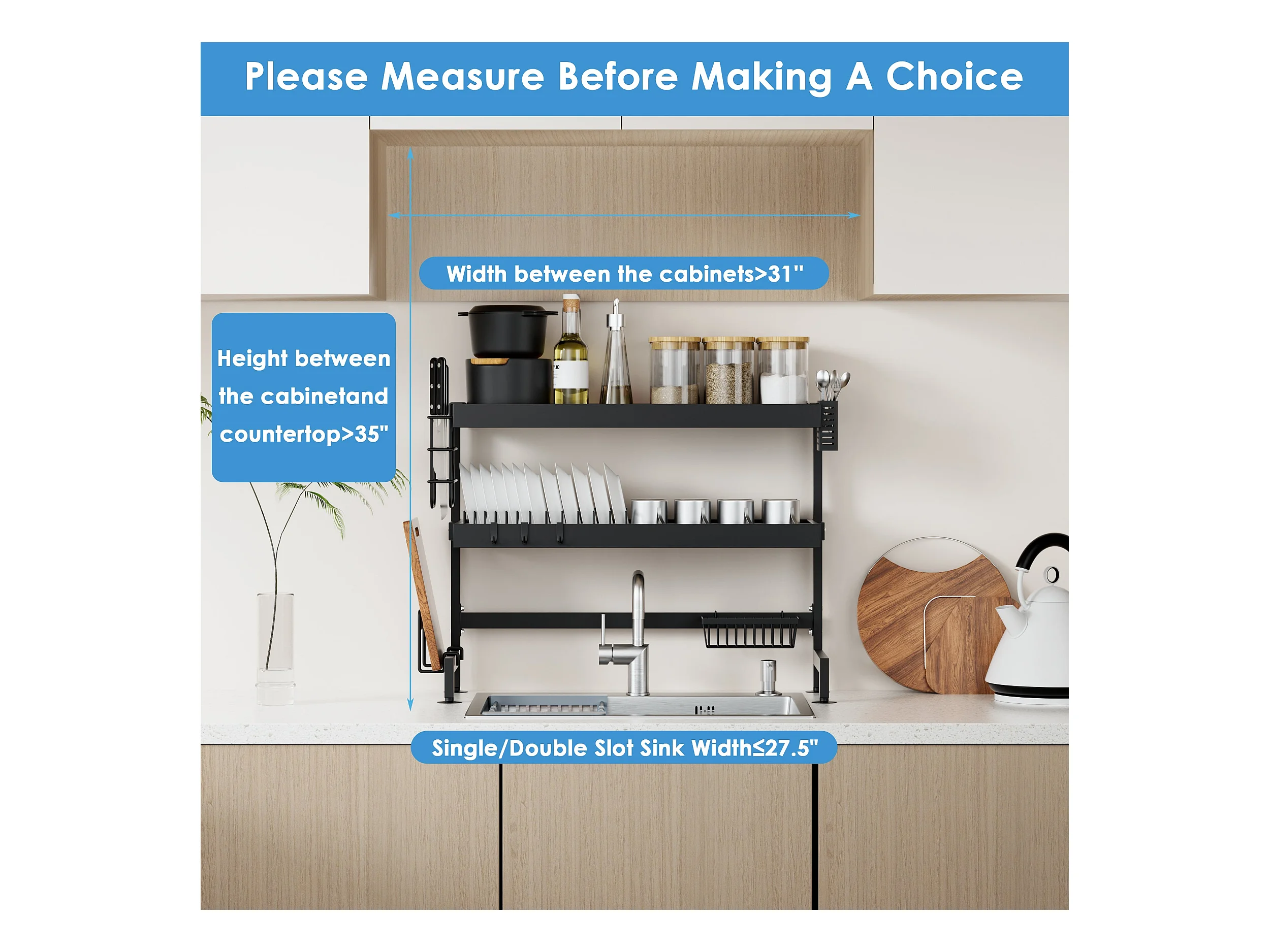 Egouttoir à vaisselle, 2 Niveaux, Grande Capacité, avec Support de Planche à découper, 4 Crochets, Rangement Vaisselle, 54 x 23 x 42cm