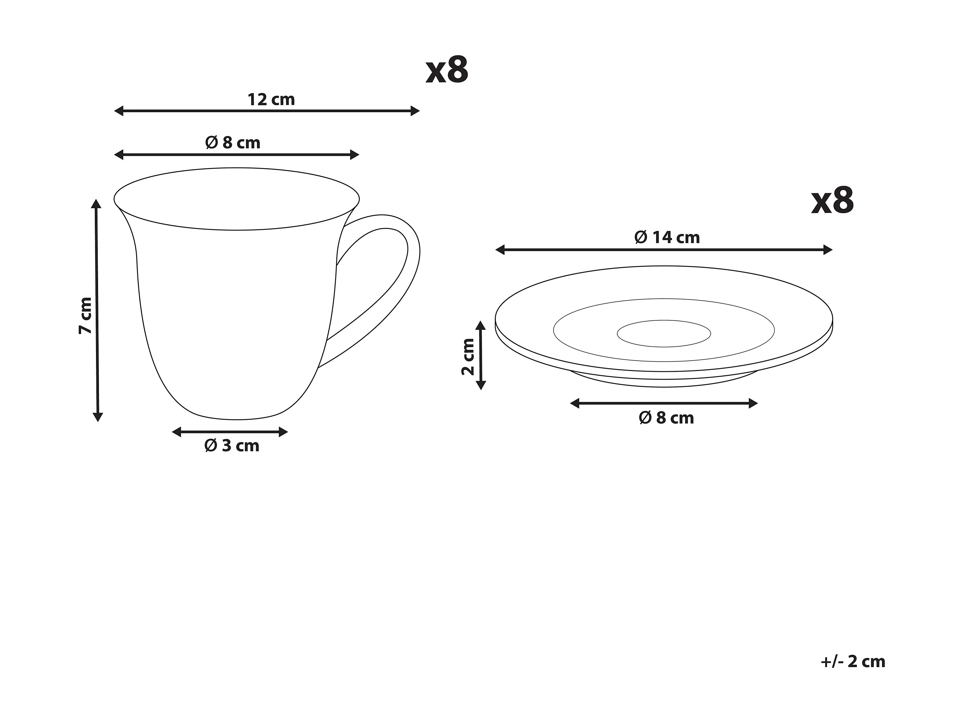 Lot de 8 tasses avec soucoupes ELDERBERRY Porcelaine Blanc