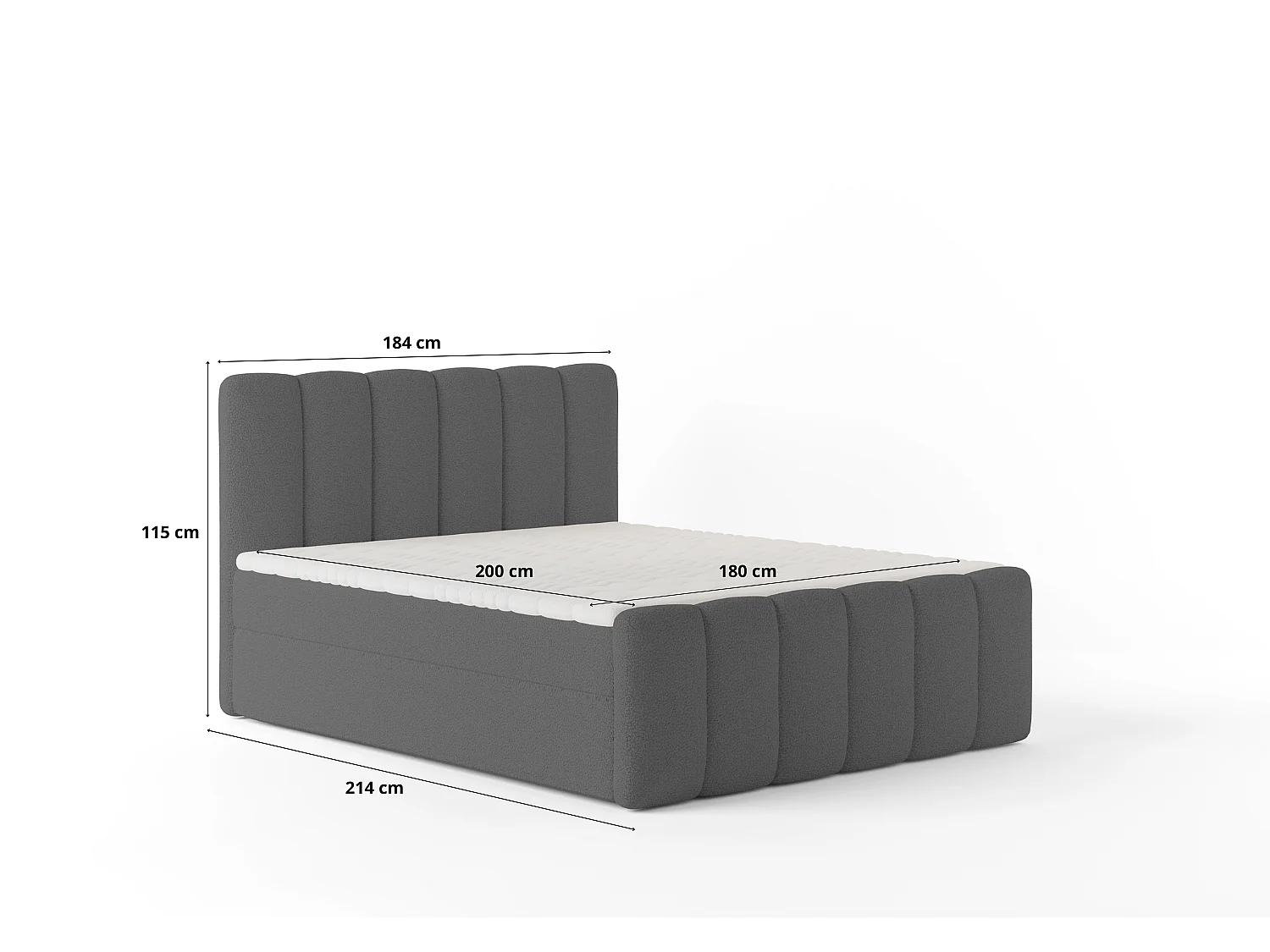 Élégant lit tapissé KORA 180x200 cm en tissu CENTAUR 15 gris