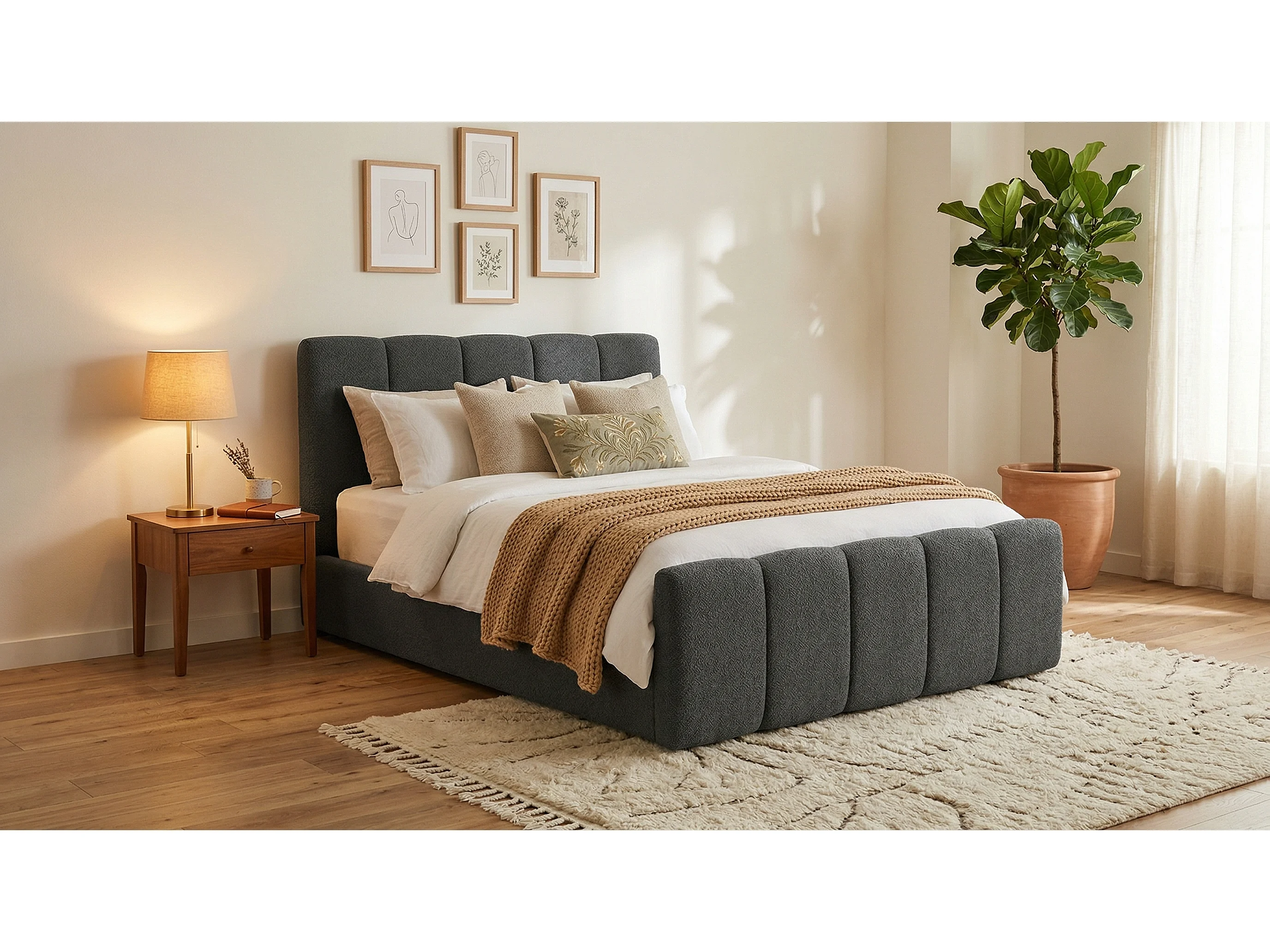 Élégant lit tapissé KORA 200x200 cm en tissu CENTAUR 15 gris