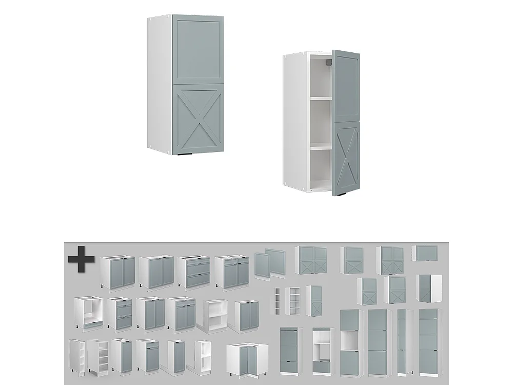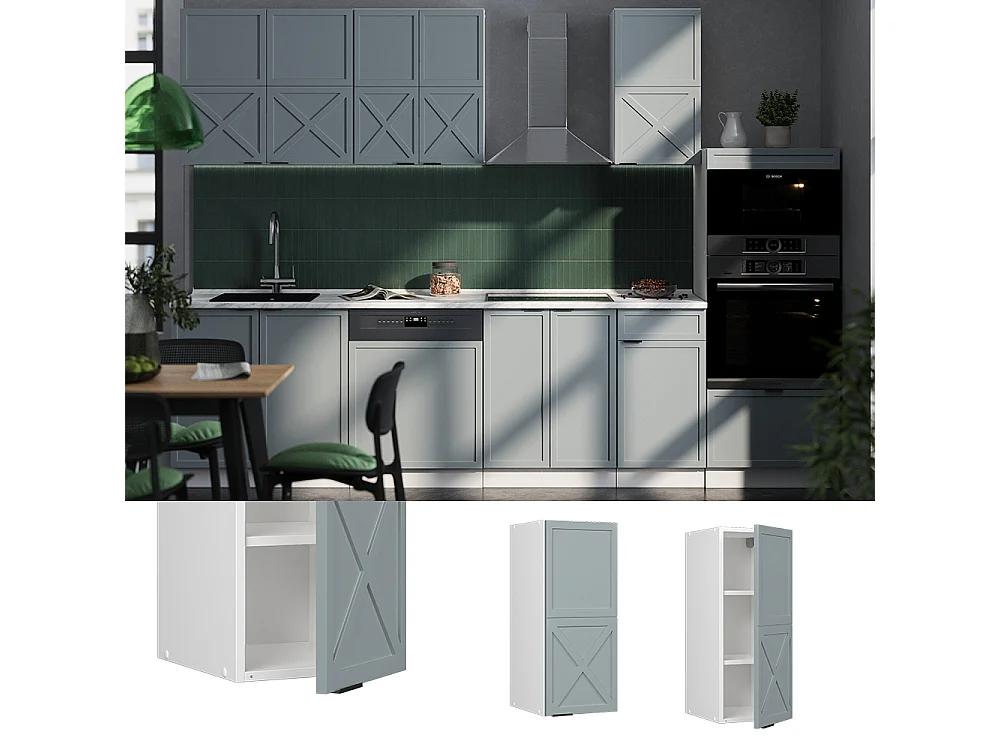 Elément haut de cuisine bleu clair-gris 30x34.1x72 fame-line