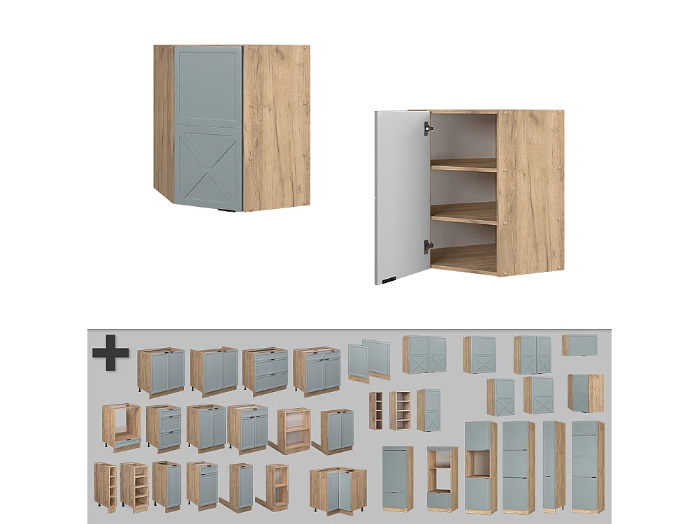Elément haut de cuisine bleu-gris 57x34.1x60 r-line
