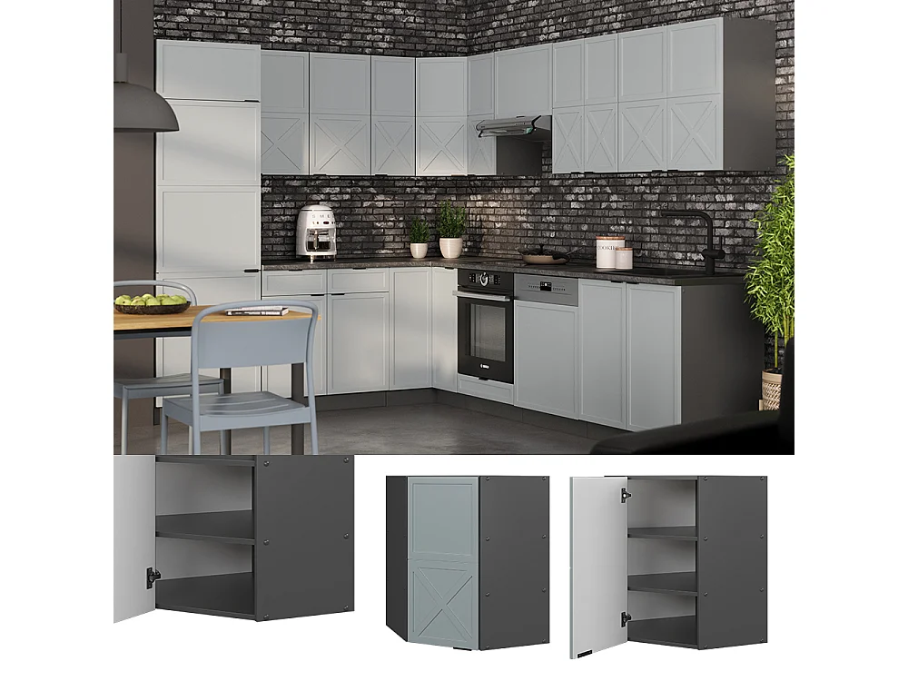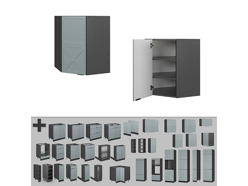 Elément haut de cuisine bleu-gris 57x34.1x60 r-line