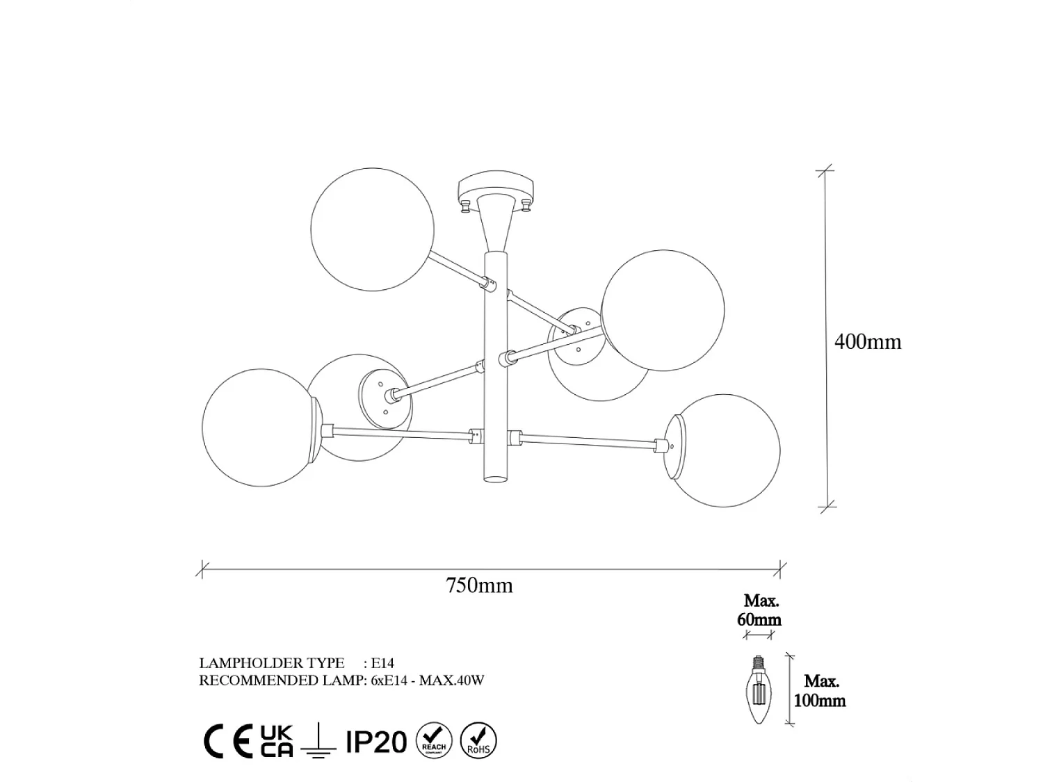 Plafonnier vintage doré - 6 lampes ÉLÉONORE