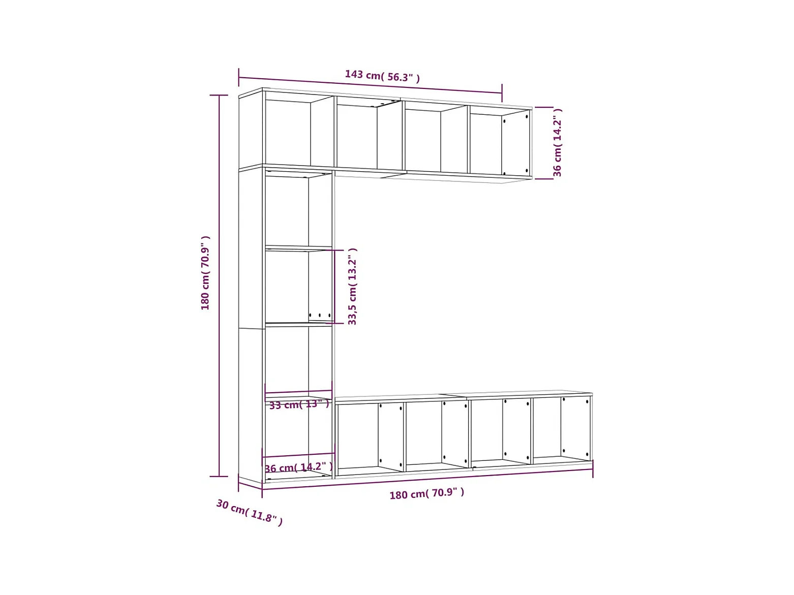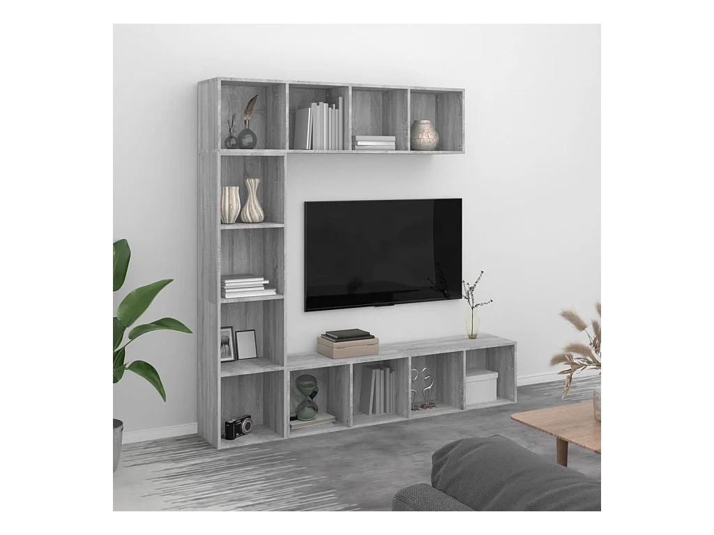 Elida Ensemble bibliothèque/meuble TV 3 pcs Sonoma gris 180x30x180 cm