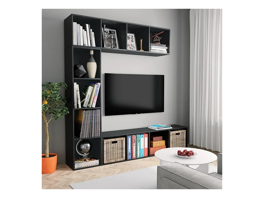 Elida Ensemble de bibliothèque/meuble TV 3 pcs Noir 180x30x180 cm