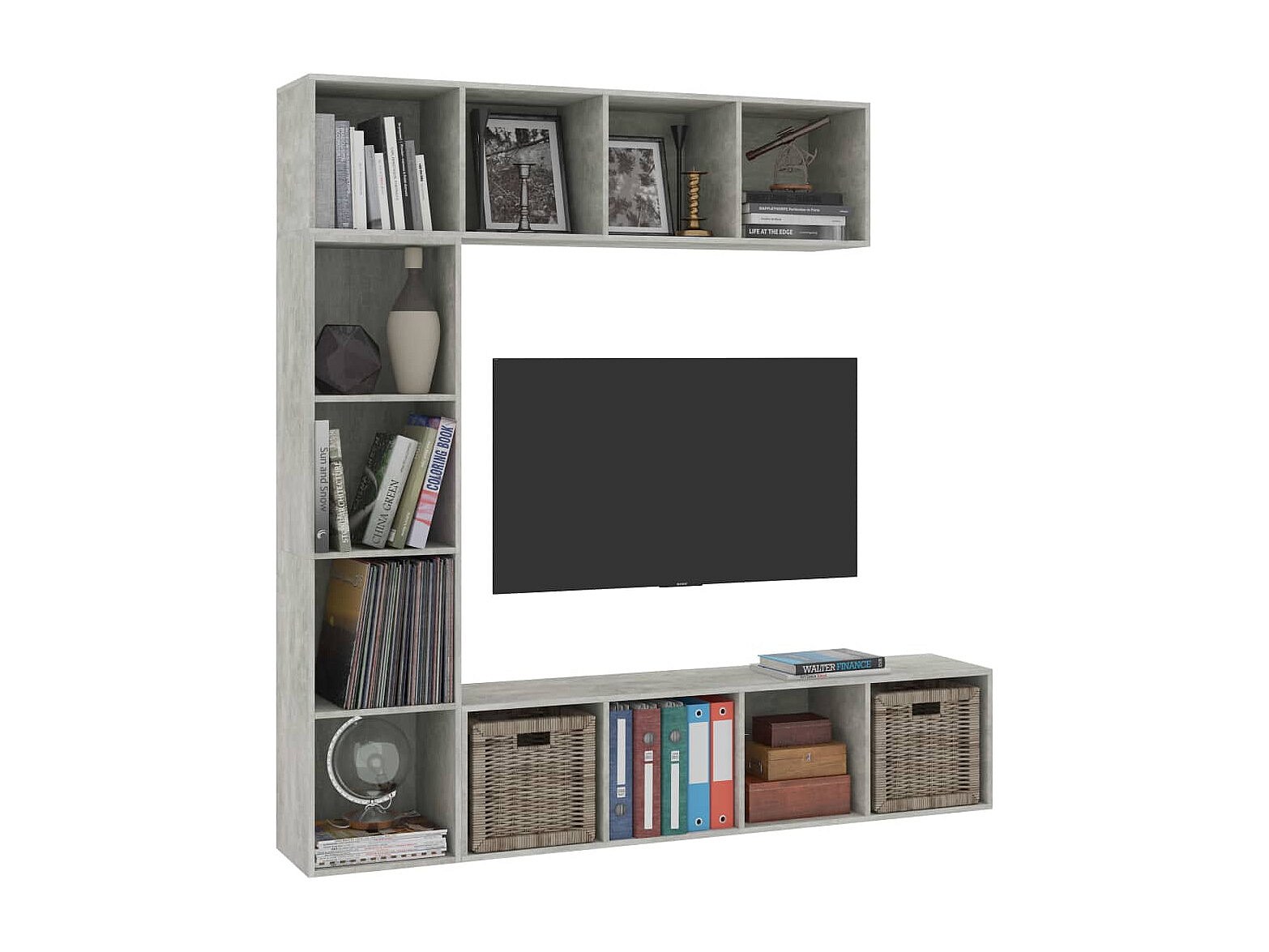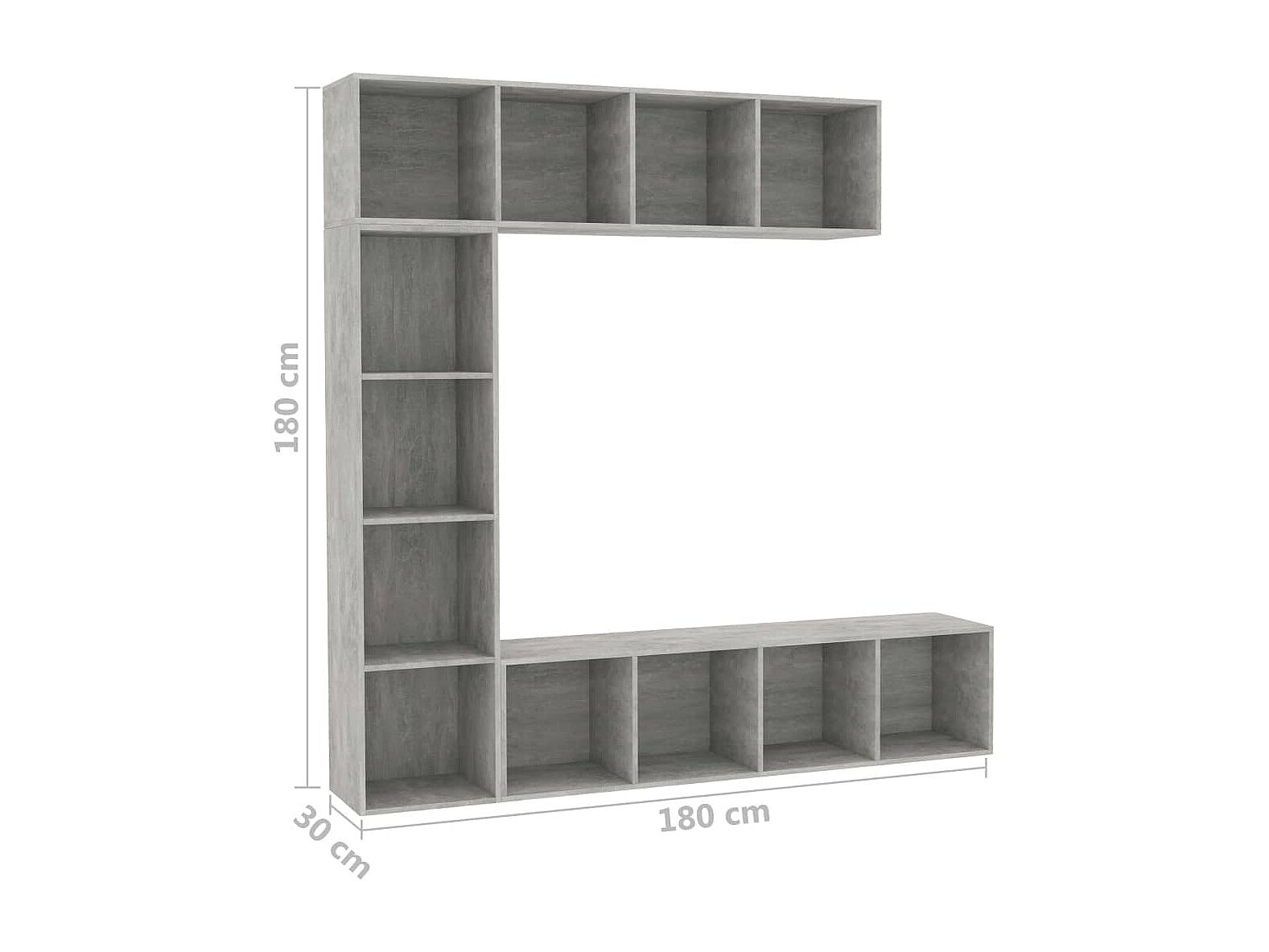 Elida Jeu de bibliothèque/meuble TV 3 pcs Gris béton 180x30x180 cm