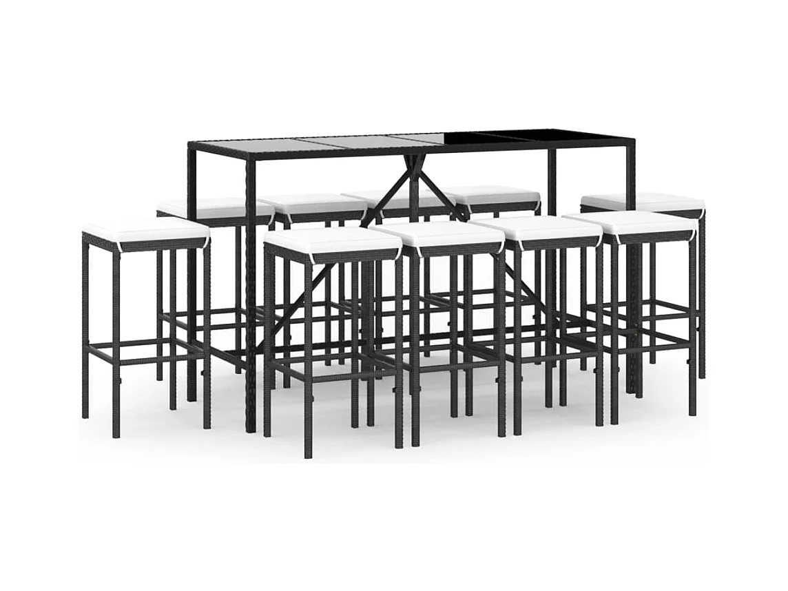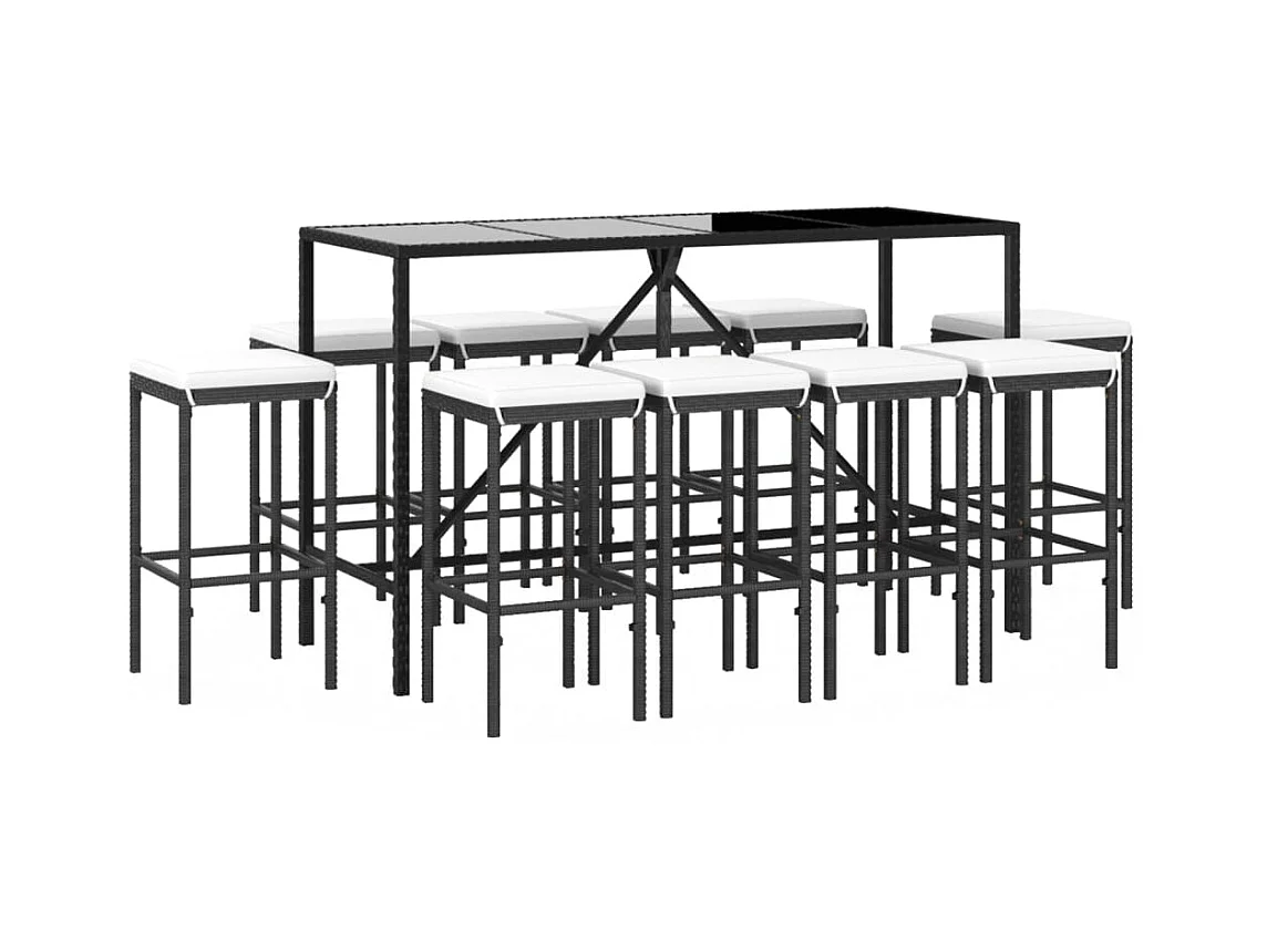 Eliron Ensemble de bar de jardin 11 pcs avec coussins noir poly rotin