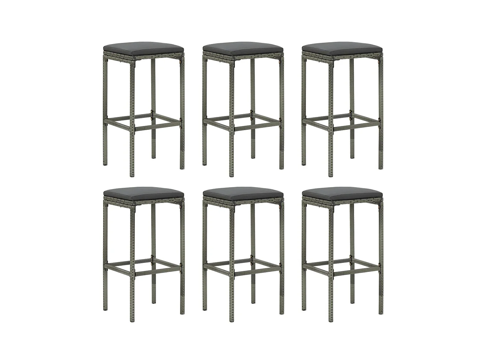 Elisah Ensemble de bar de jardin 7 pcs et coussins Résine tressée Gris