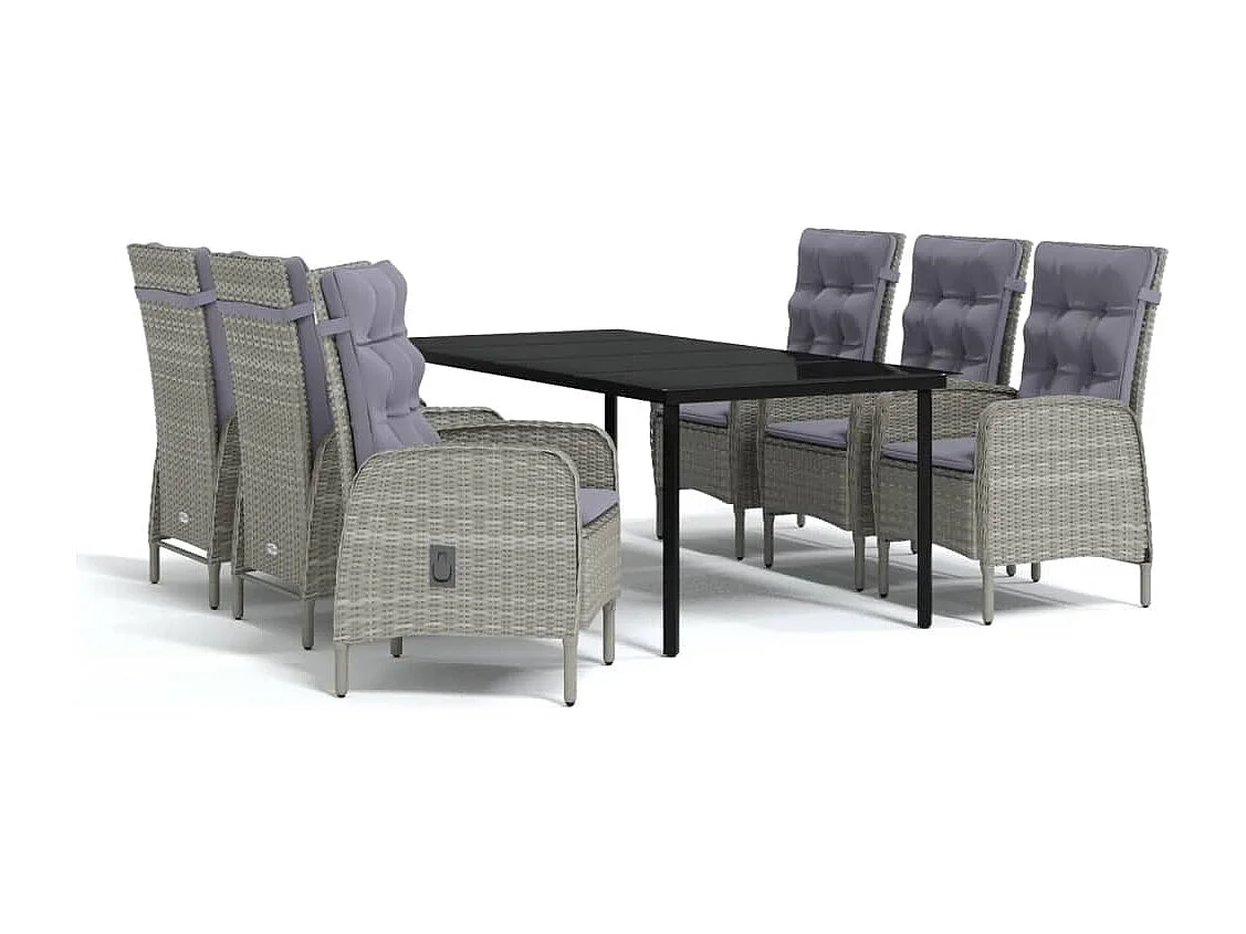Vernon Ensemble à manger de jardin coussins 7pcs Gris et noir