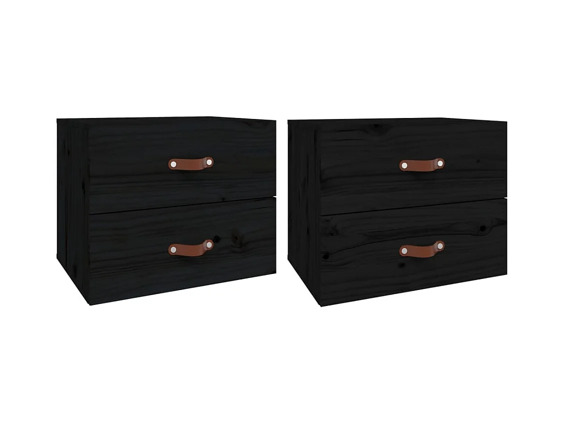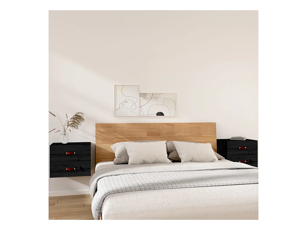 Abdeslam Étagères de chevet murales 2 pcs Noir Bois de pin massif