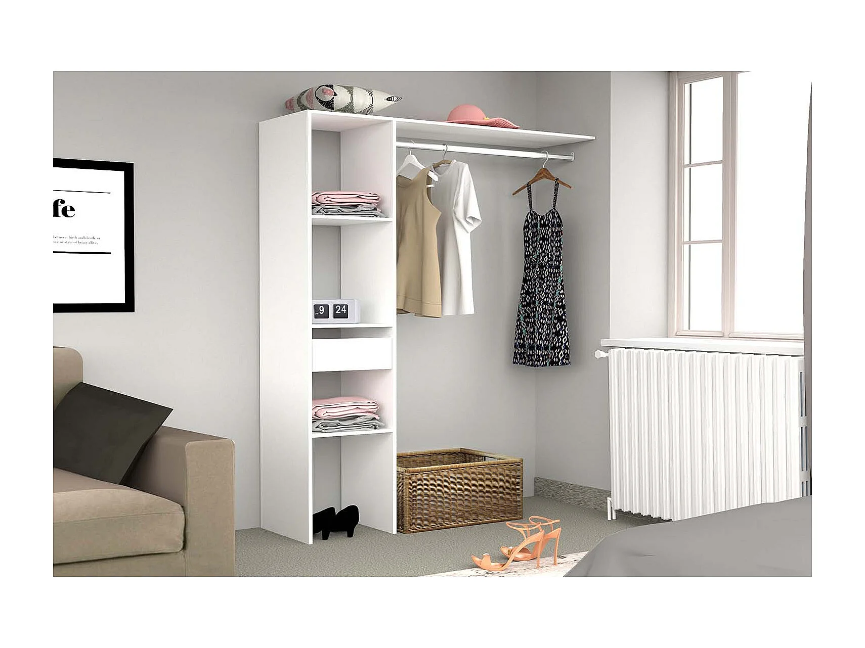 Dressing blanc 3 étagères, 1 tiroir, penderie 138 x 40 x 180 cm ELYSEE