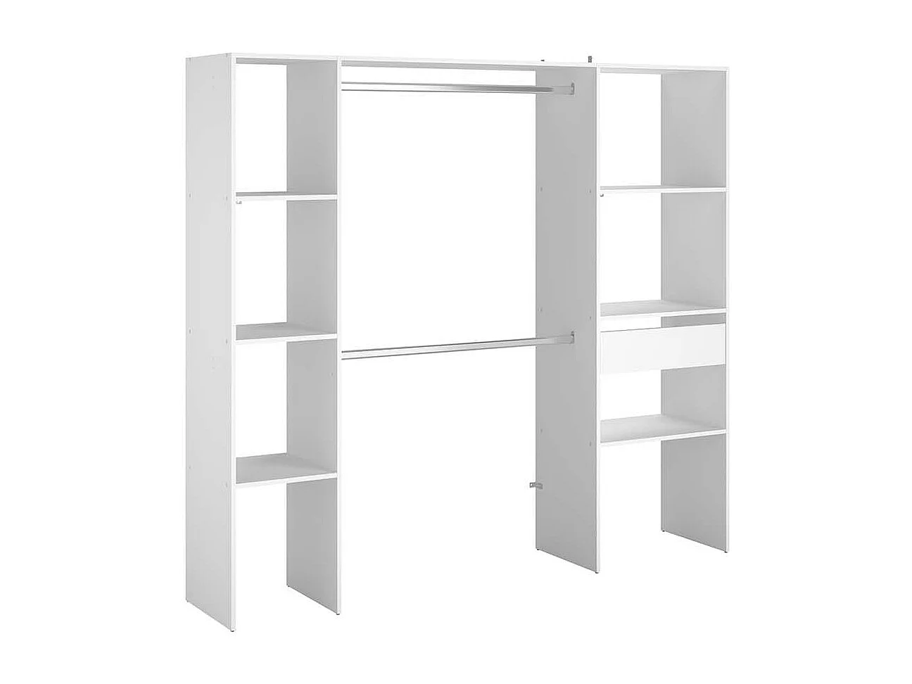 Dressing blanc 6 étagères, 1 tiroir, 2 penderies 198 x 40 x 180 cm ELYSEE